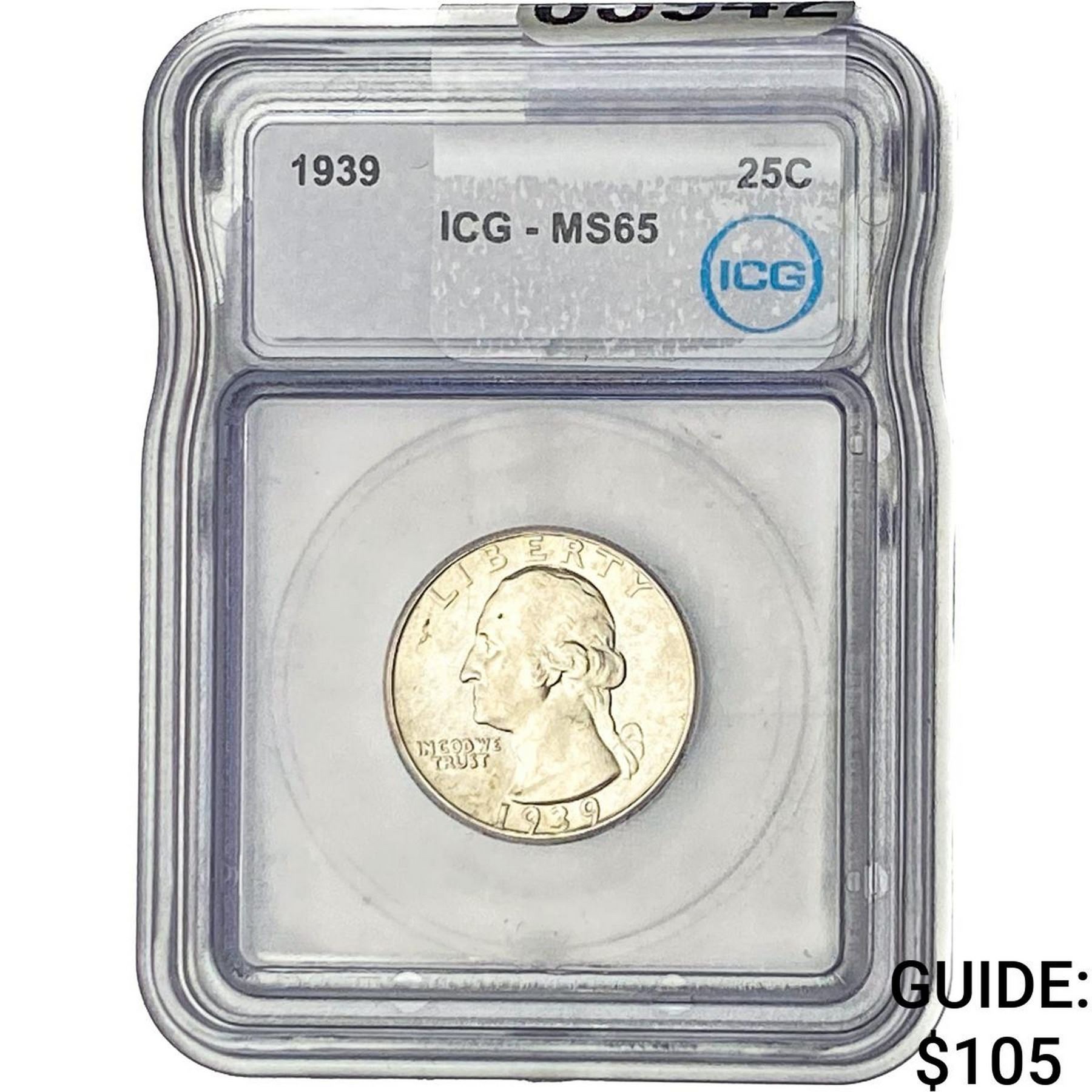 1939 Washington Silver Quarter ICG MS65