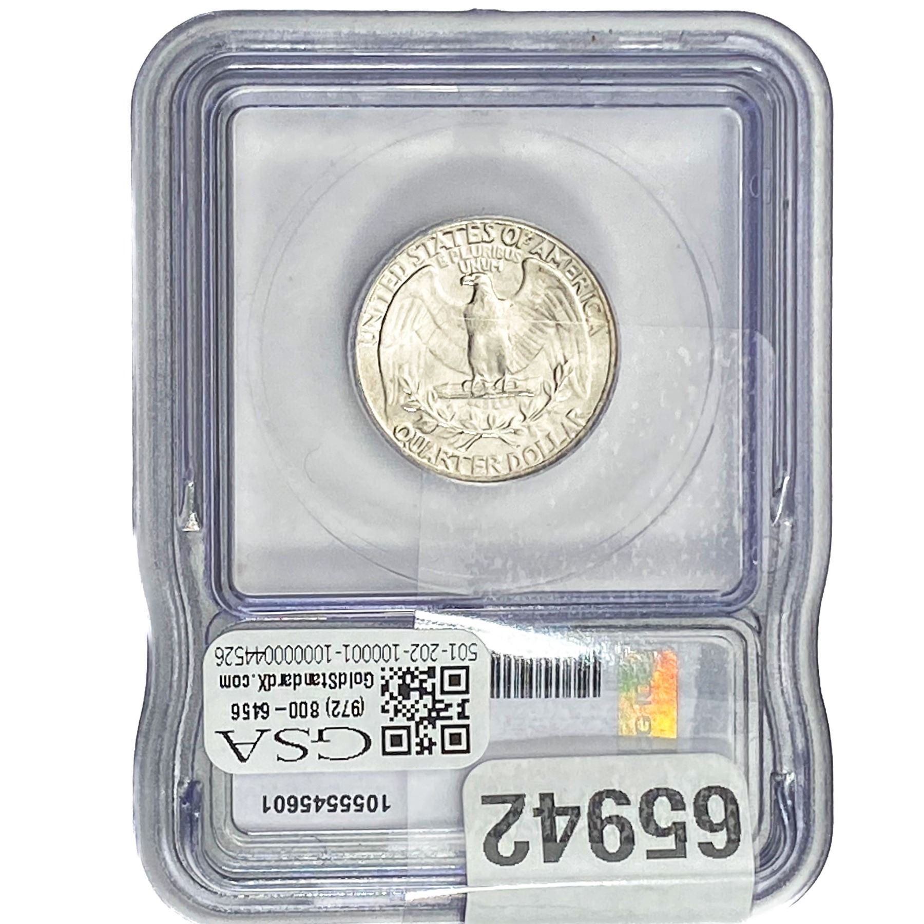 e. Coins sold referencing a third-party grading service are sold “AS IS” without any express or implied warranty, except for a guarantee by GSA that they are genuine. Removal or alteration of the holder, voids all of Bidder’s claims concerning that Product. Certain warranties may be available from the grading services and Bidders are referred to them for further details: Numismatic Guaranty Corporation (NGC), PO Box 4776, Sarasota, FL 34230, www.ngccoin.com/services/writtenguarantee.asp; Professional Coin Grading Services (PCGS), PO Box 9458, Newport Beach, CA 92658, www.pcgs.com/guarantee.html; ANACS, 6555 S. Kenton St., Ste. 303, Englewood, CO 80111; and Independent Coin Grading Co. (ICG), 7901 East Bellview, Ave., Suite 50, Englewood, CO 80111.
