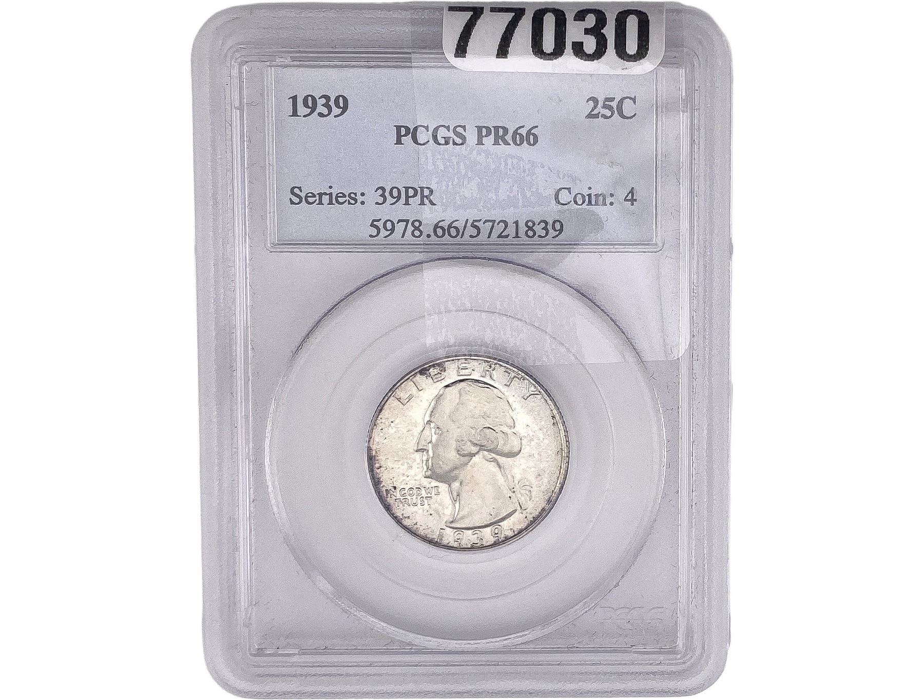 1939 Washington Silver Quarter PCGS PR66