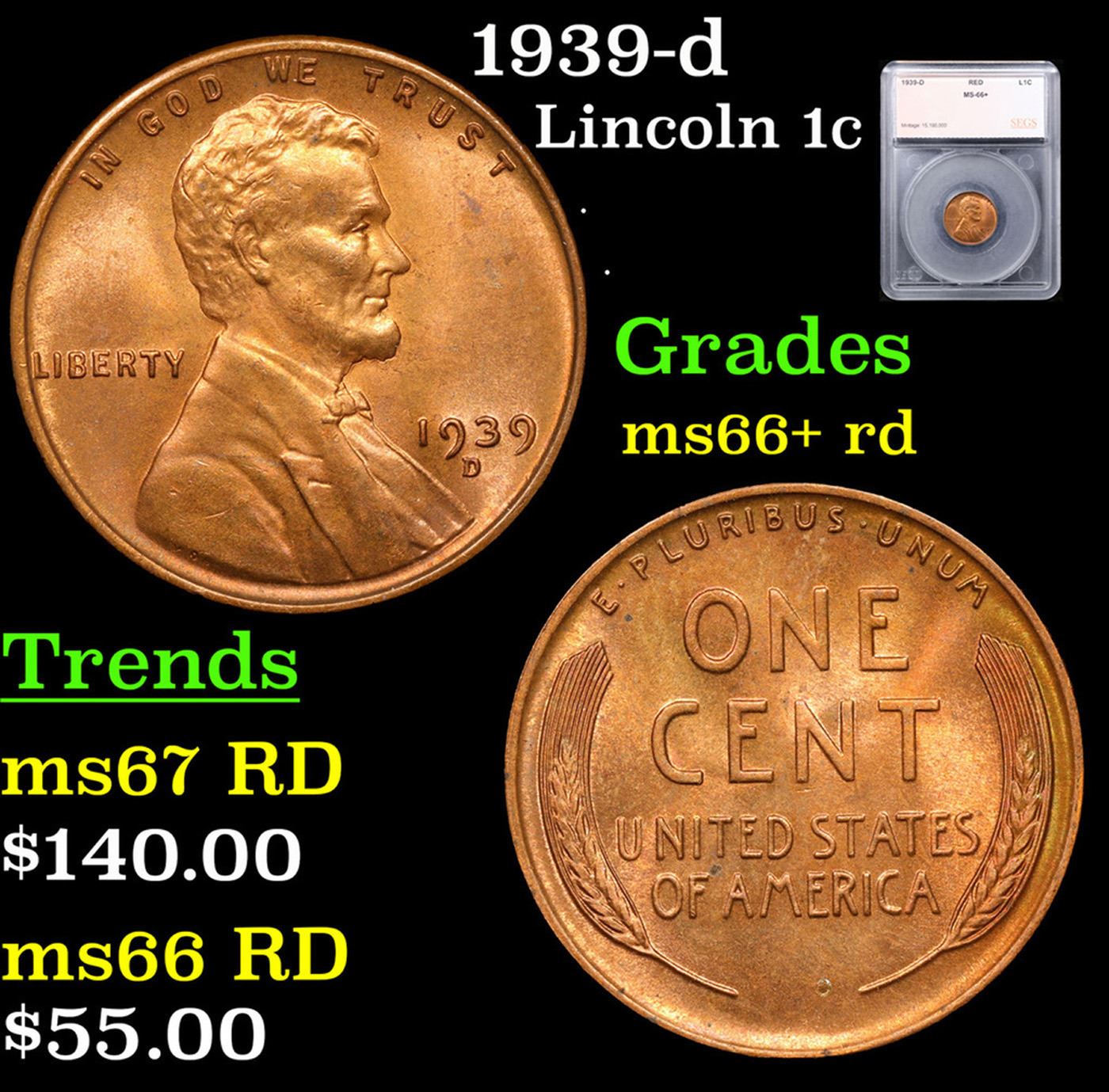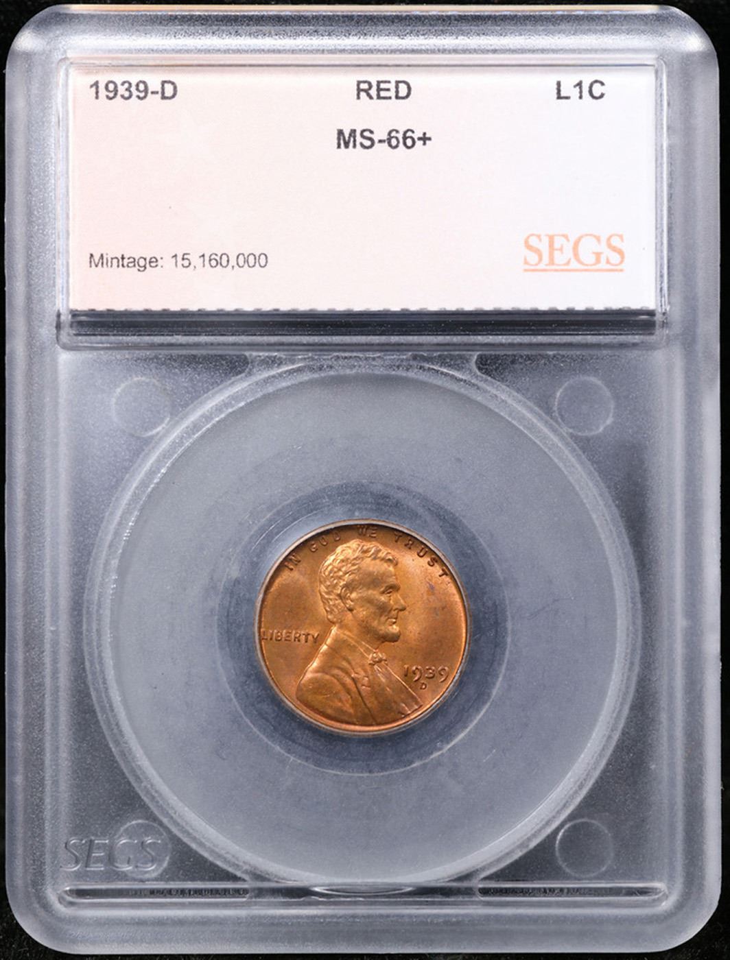 1939-d Lincoln Cent 1c Graded ms66+ rd By SEGS.