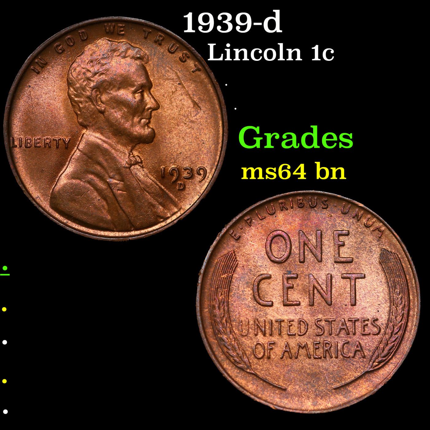 1939-d Lincoln Cent 1c Grades Choice Unc BN.