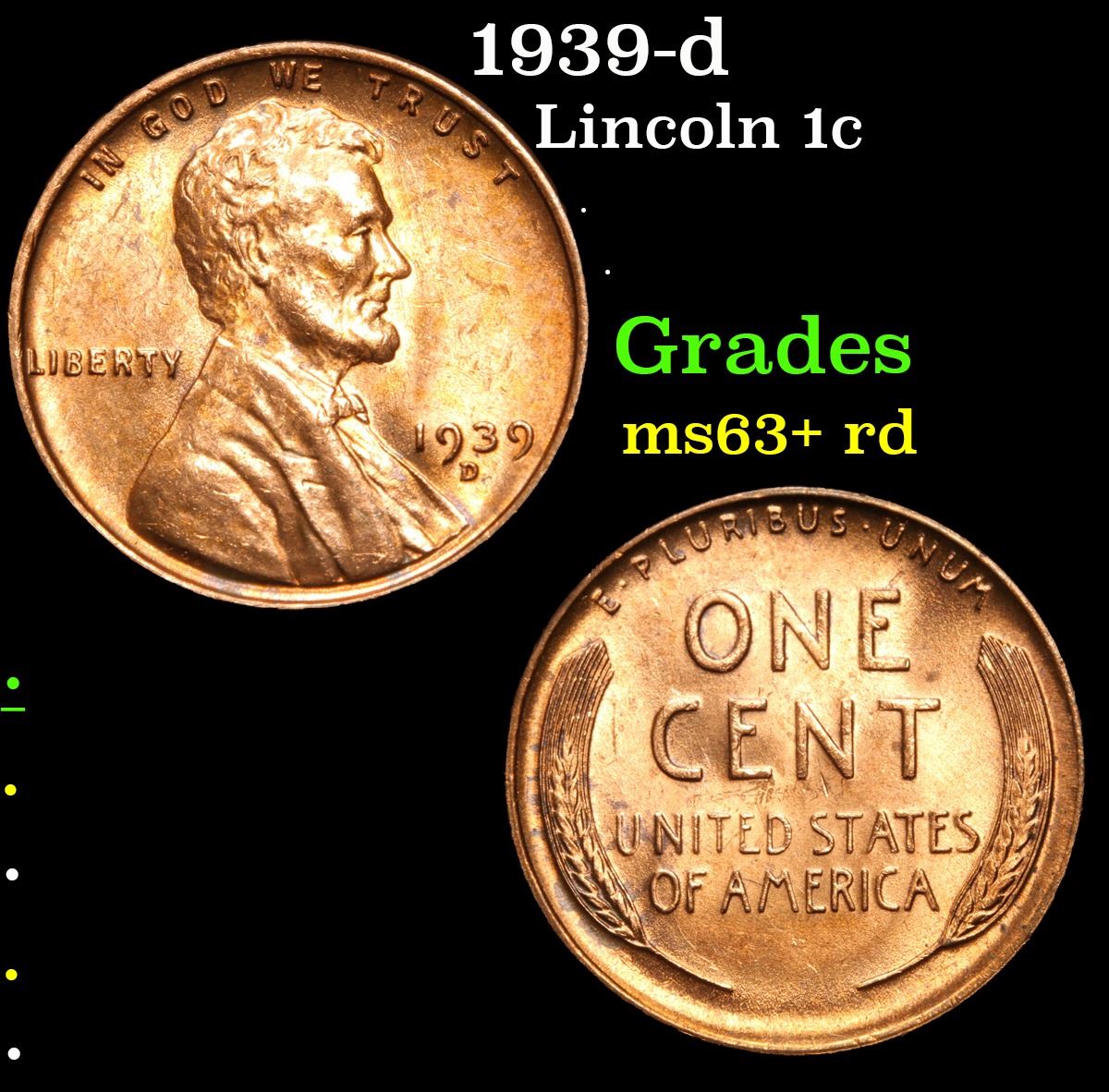 1939-d . . Lincoln Cent 1c Grades Select+ Unc RD.