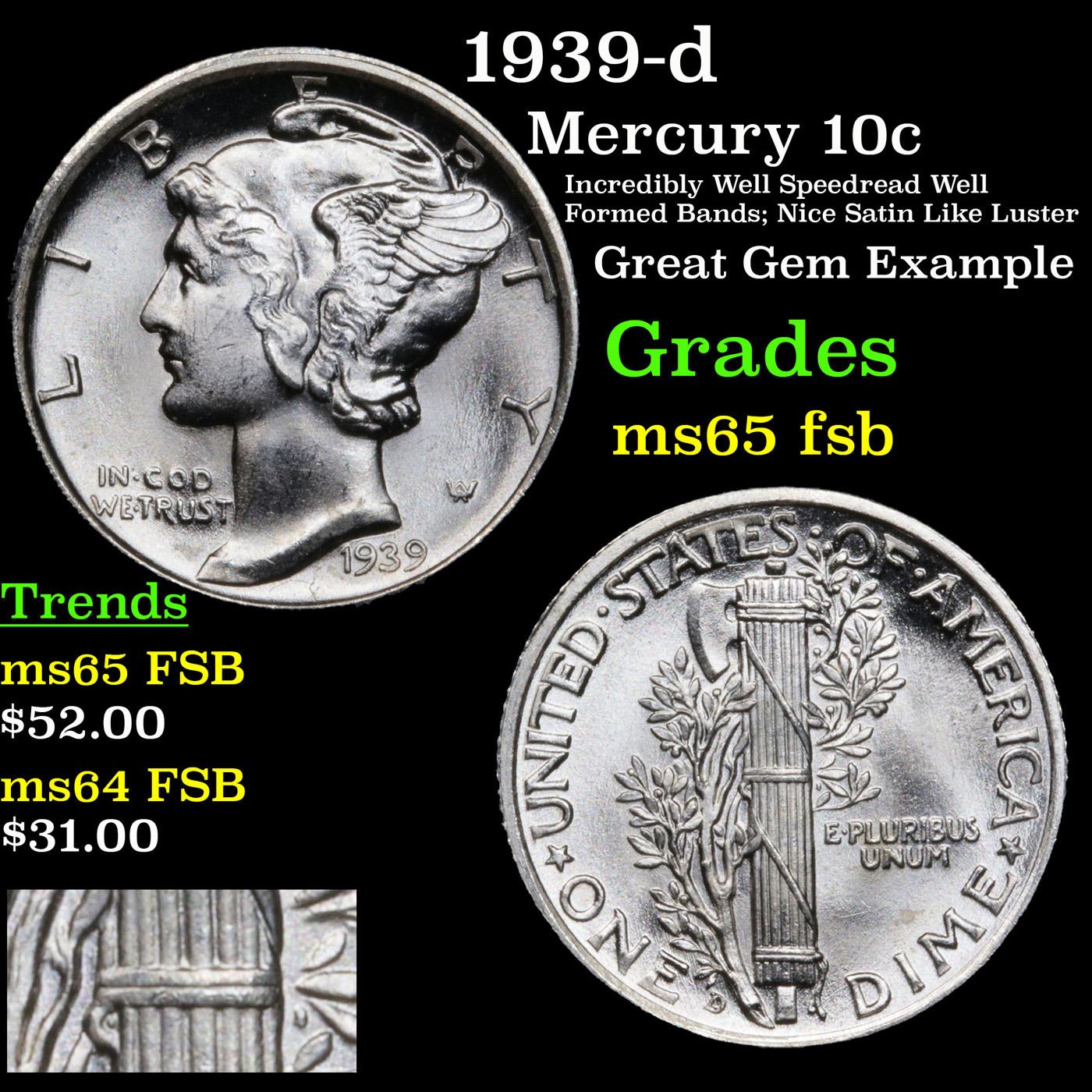 1939-d Mercury Dime 10c Grades GEM FSB.