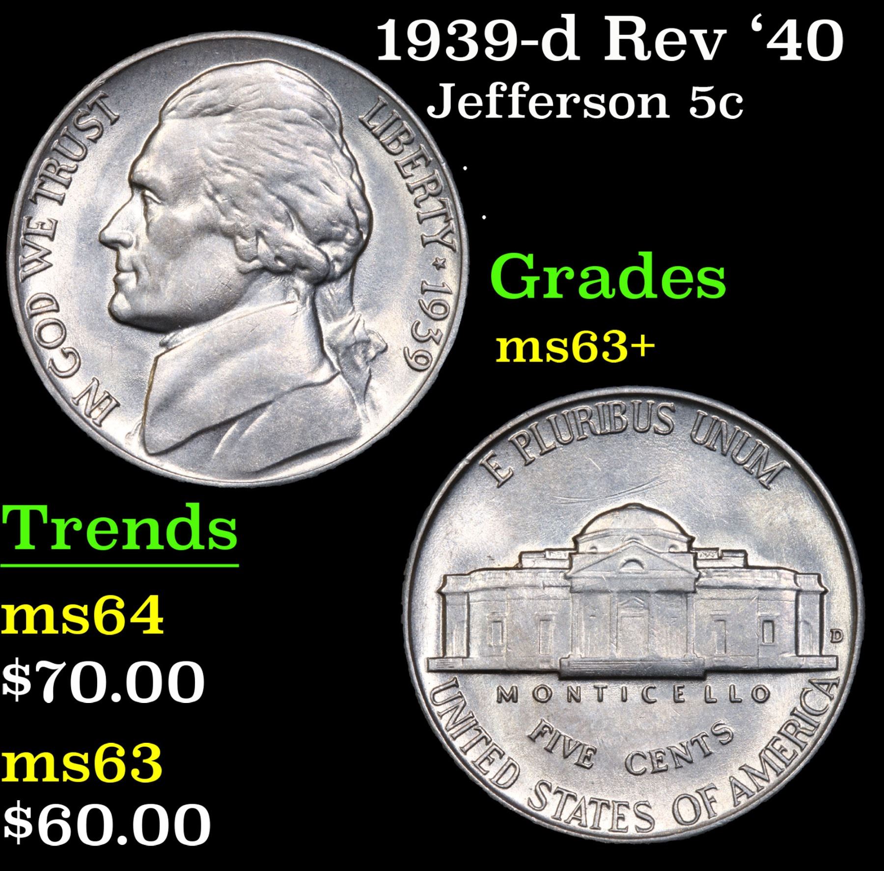 1939-d Rev '40 . . Jefferson Nickel 5c Grades Select+ Unc.