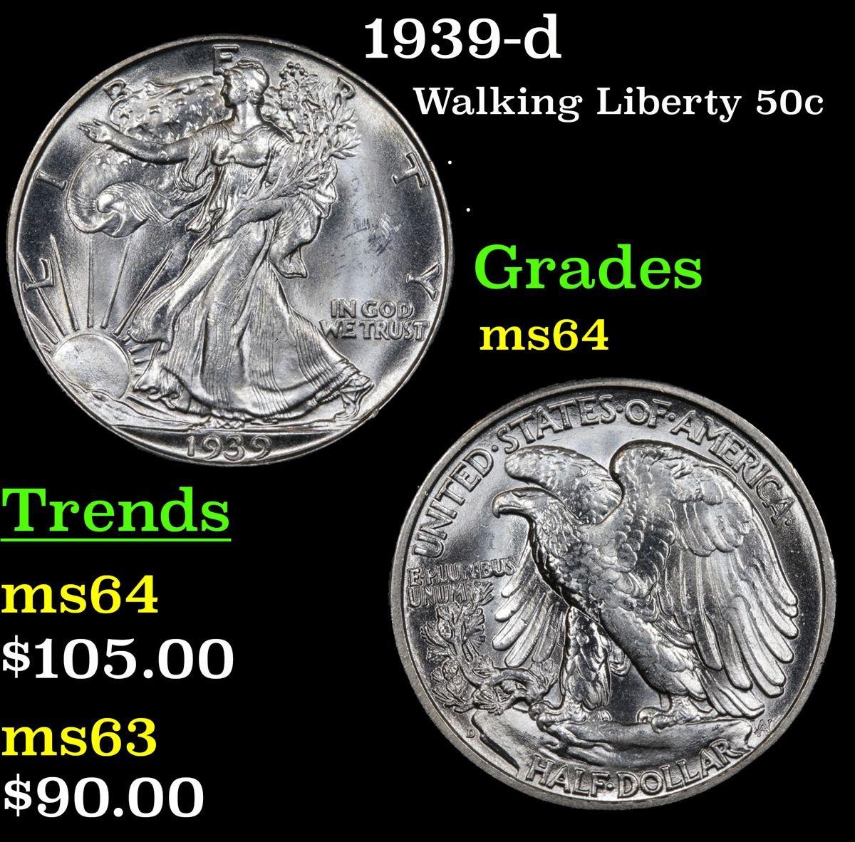 1939-d Walking Liberty Half Dollar 50c Grades Choice Unc.