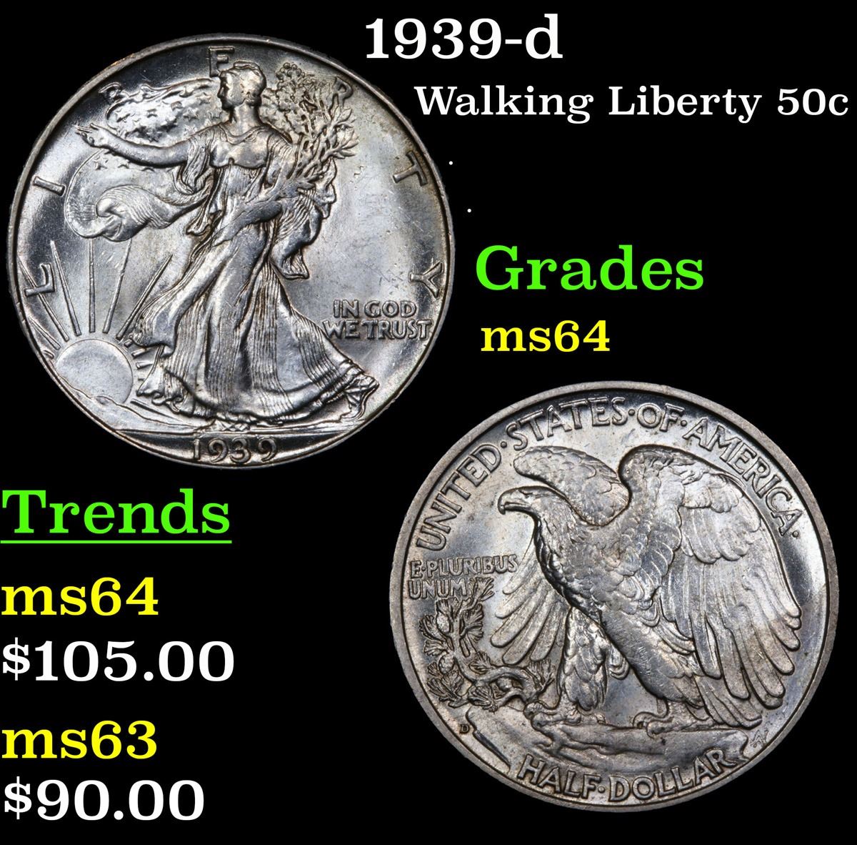 1939-d Walking Liberty Half Dollar 50c Grades Choice Unc.