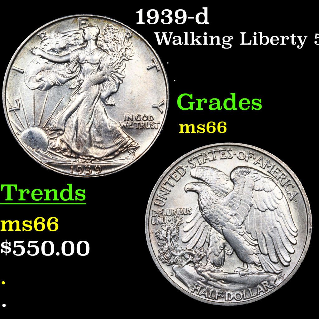 1939-d Walking Liberty Half Dollar 50c Grades GEM+ Unc.