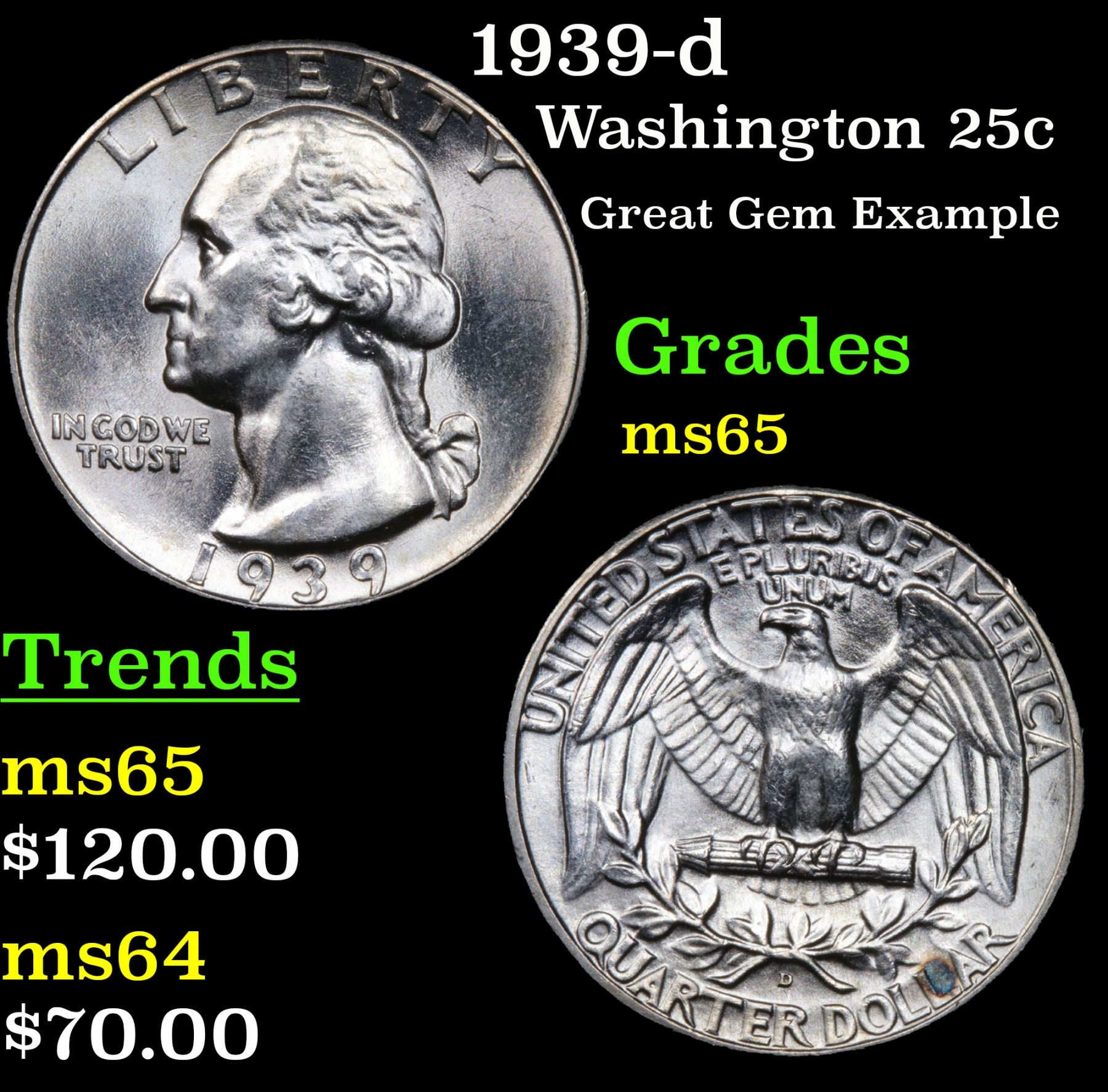 1939-d Washington Quarter 25c Grades GEM Unc.