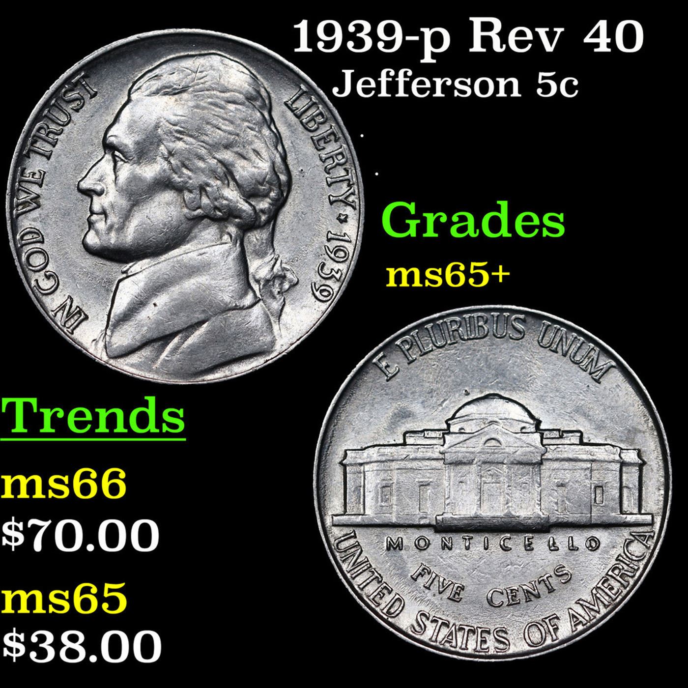 1939-p Rev 40 Jefferson Nickel 5c Grades GEM+ Unc.