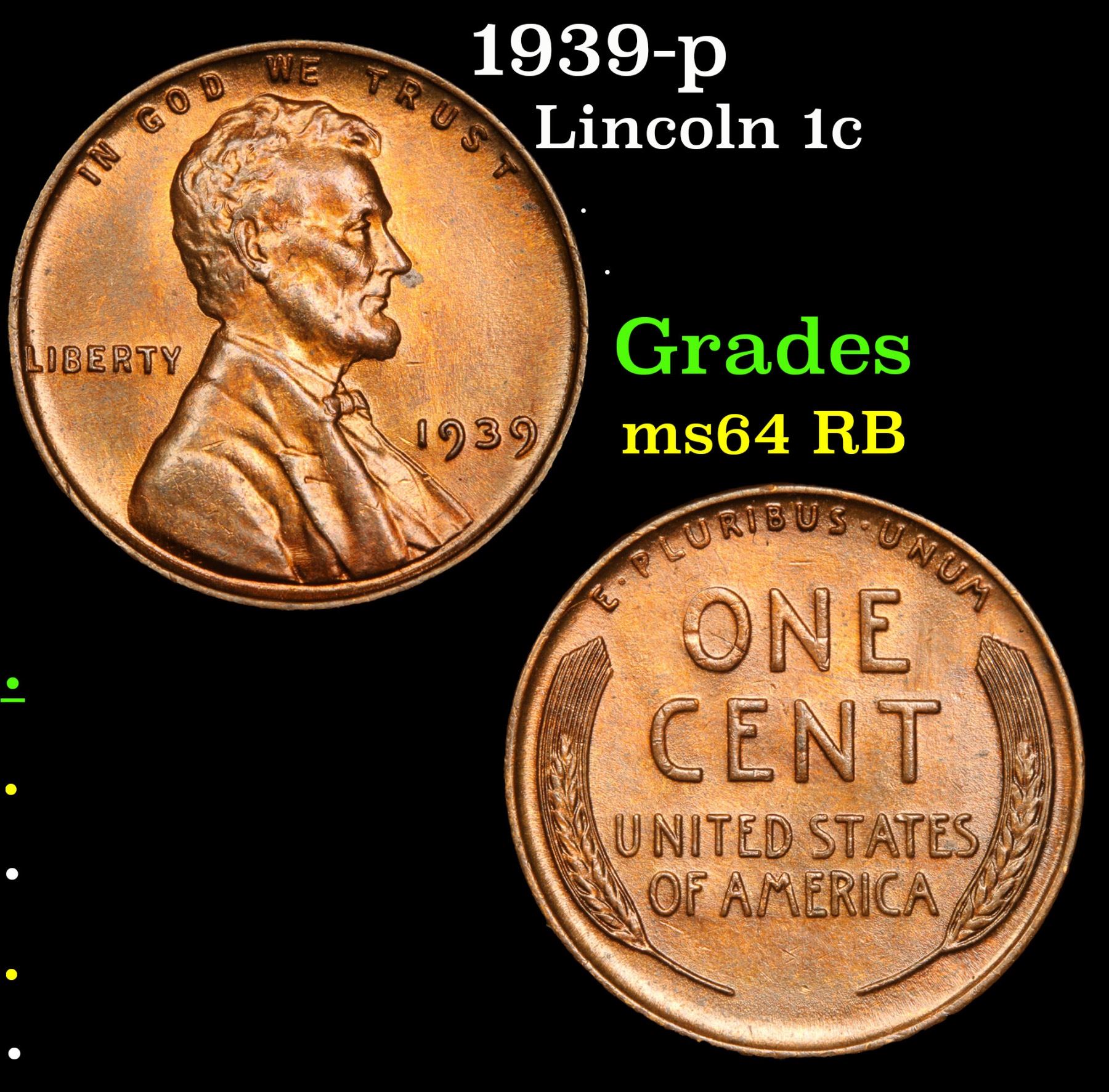 1939-p . . Lincoln Cent 1c Grades Choice Unc RB.