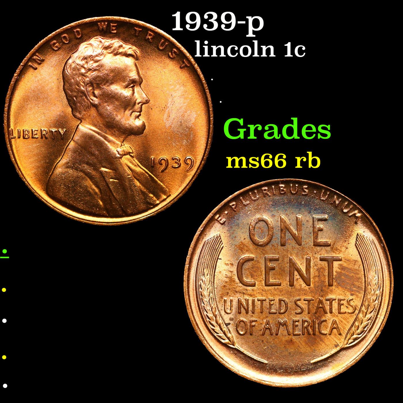 1939-p Lincoln Cent 1c Grades GEM+ Unc RB.