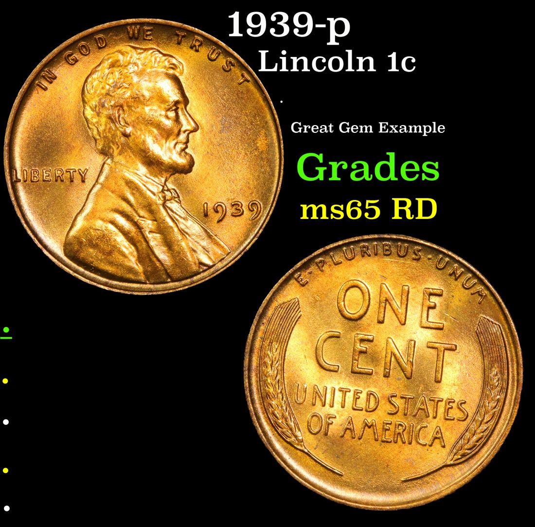 1939-p . Great Gem Example Lincoln Cent 1c Grades GEM Unc RD.