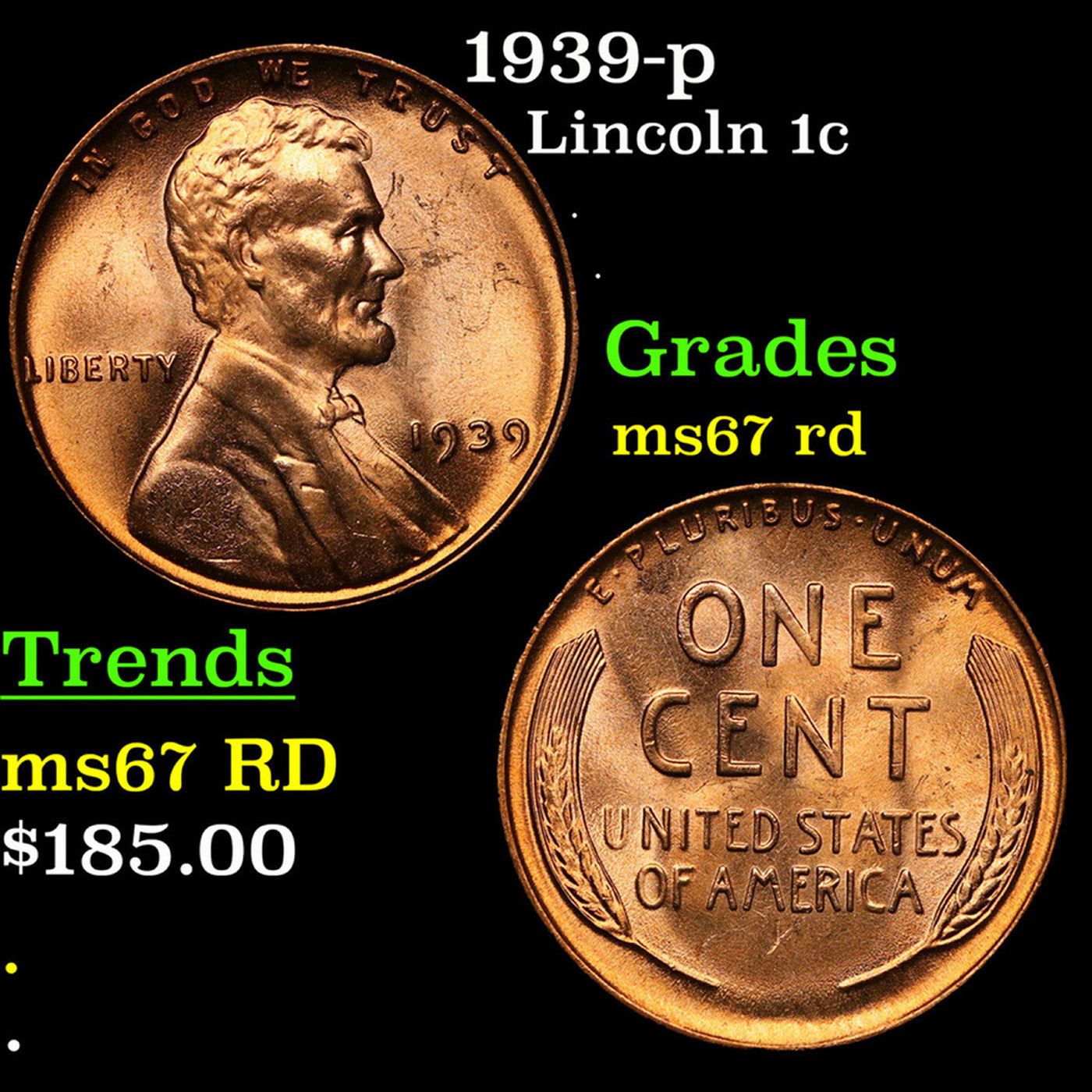1939-p Lincoln Cent 1c Grades GEM++ Unc RD.