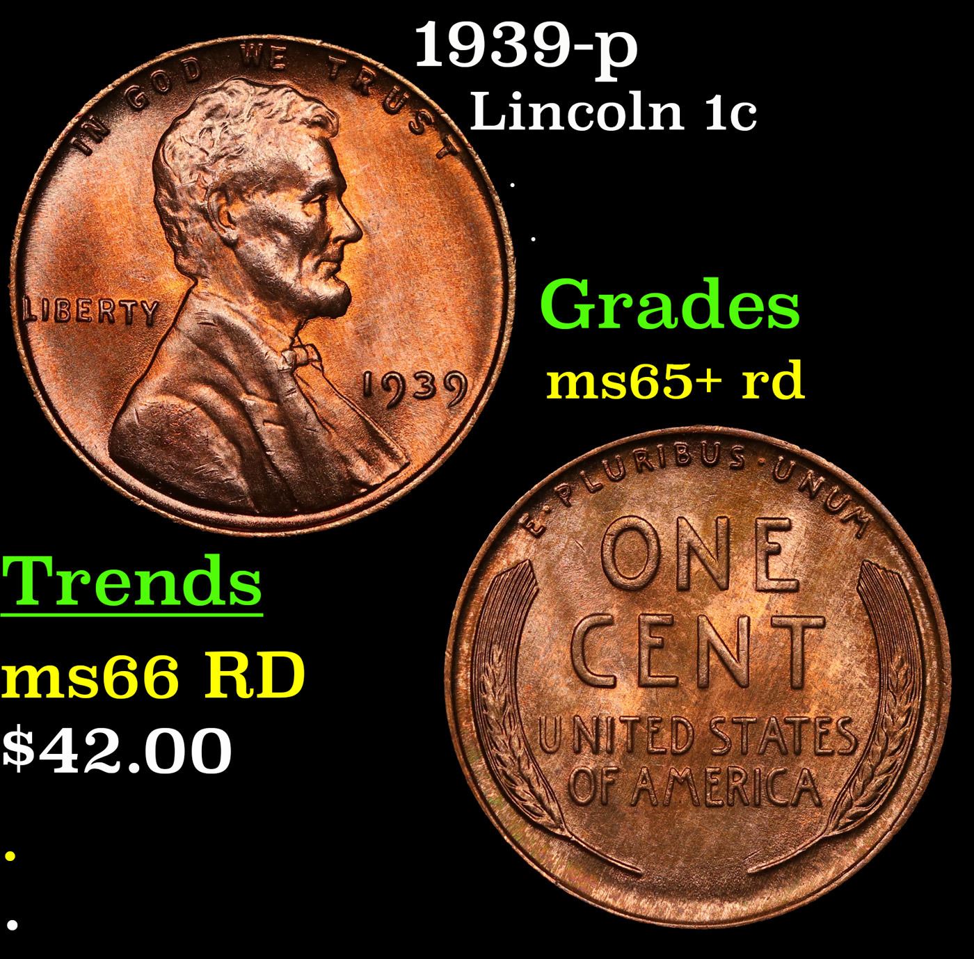 1939-p Lincoln Cent 1c Grades Gem+ Unc RD.