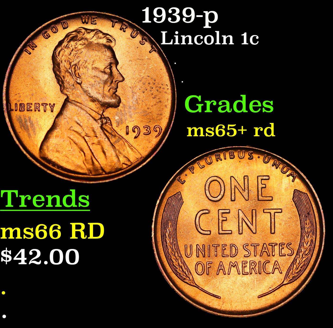 1939-p Lincoln Cent 1c Grades Gem+ Unc RD.