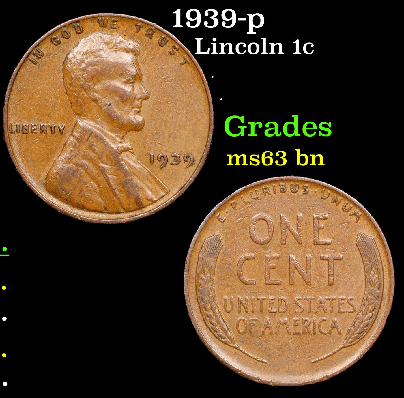 1939-p Lincoln Cent 1c Grades Select Unc BN.