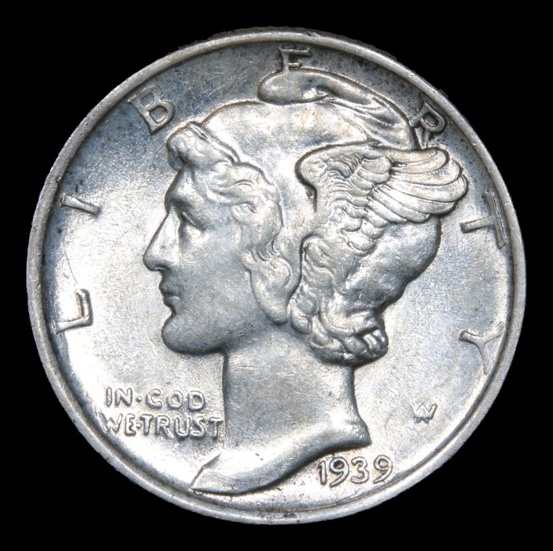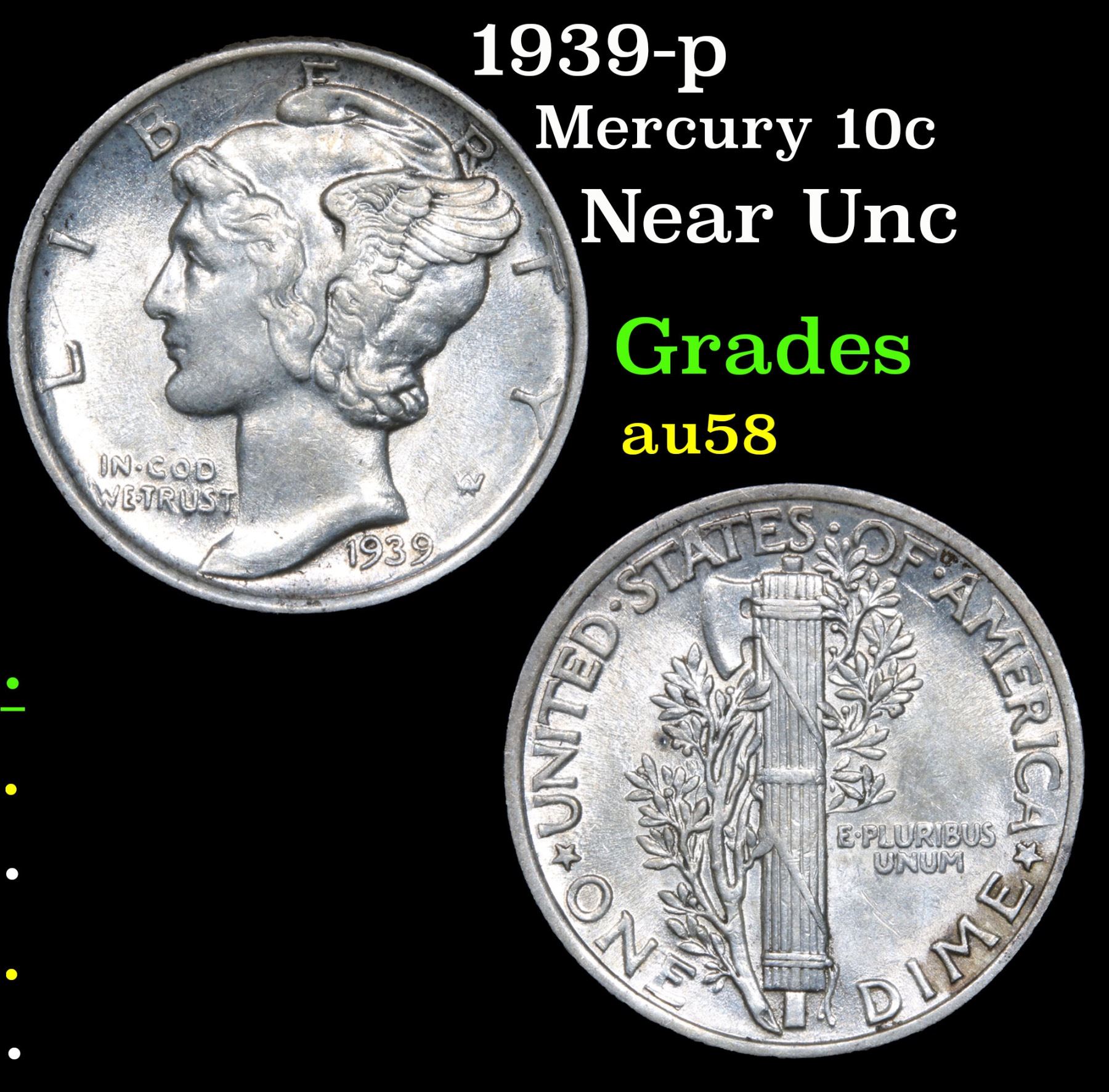 1939-p Mercury Dime 10c Grades Choice AU/BU Slider. Near Unc