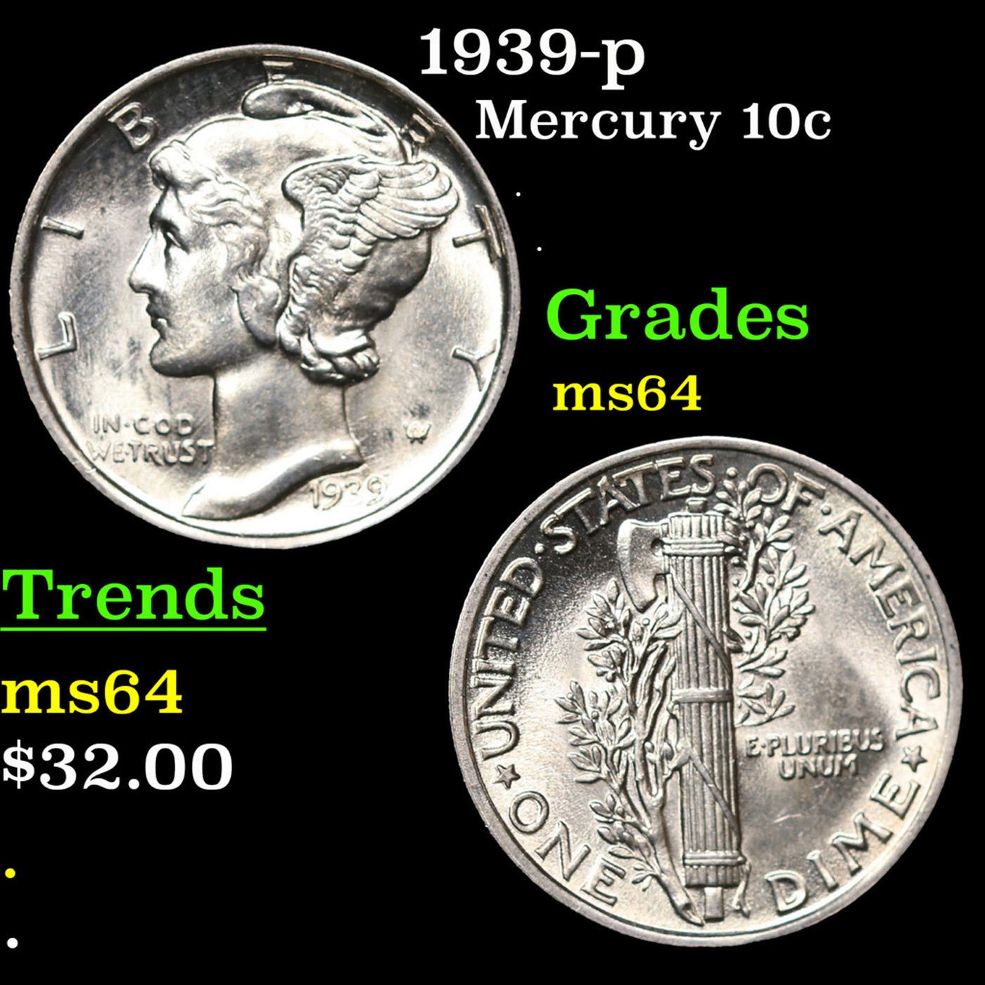 1939-p Mercury Dime 10c Grades Choice Unc.