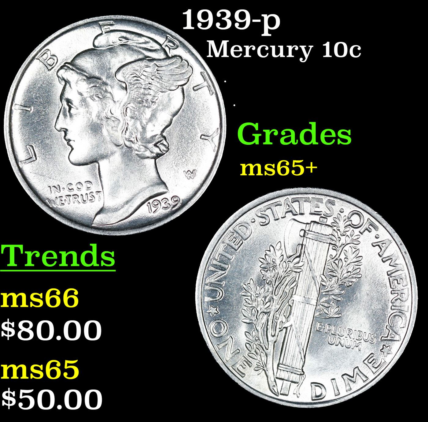 1939-p Mercury Dime 10c Grades GEM+ Unc.