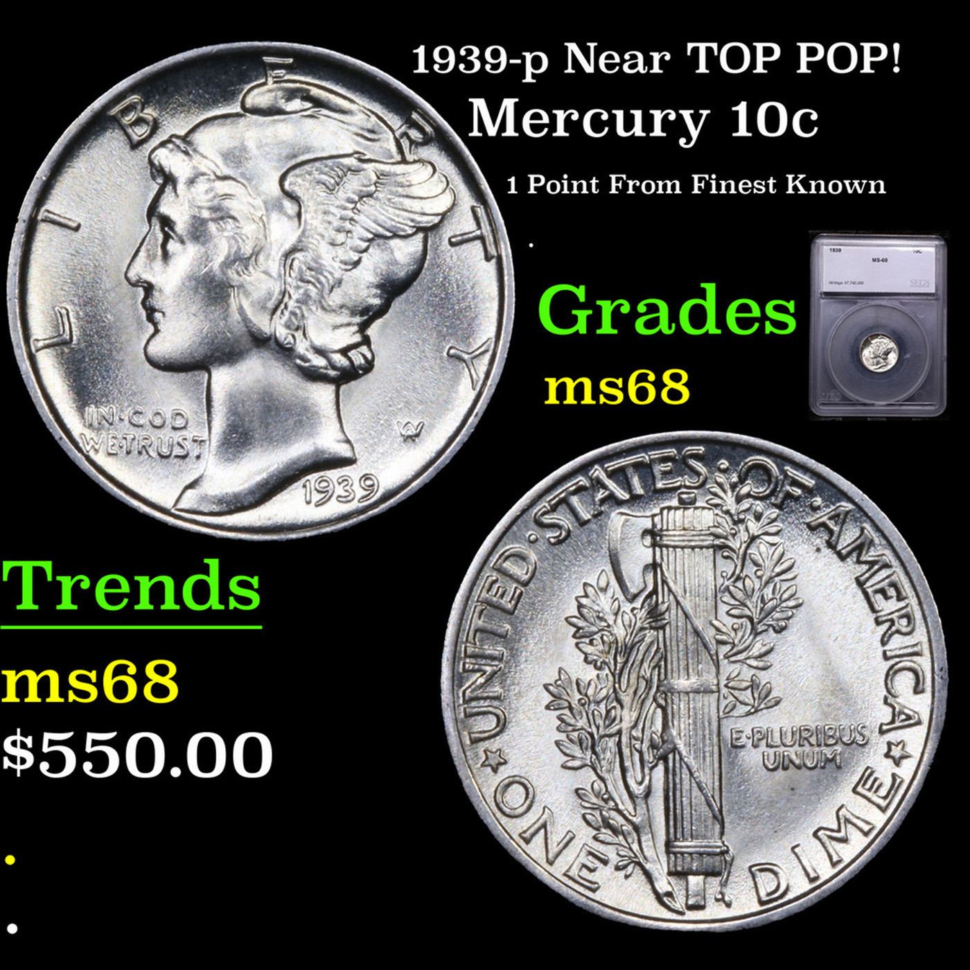 1939-p Near TOP POP! Mercury Dime 10c Graded ms68 BY SEGS. A Corey's Pick, Bid to Win, Don't let it get Away, you might not find its equal Coin. I give this coin my highest recommendation