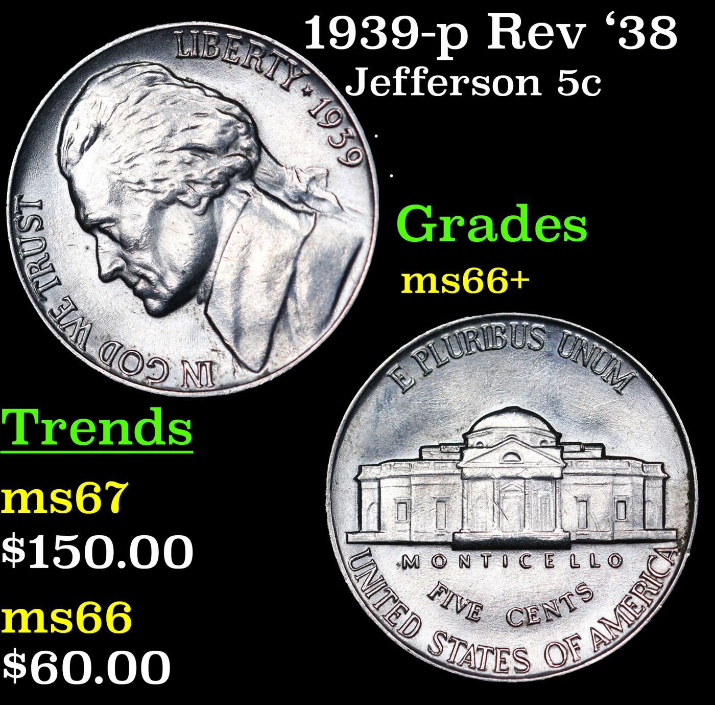 1939-p Rev '38 Jefferson Nickel 5c Grades GEM++ Unc.