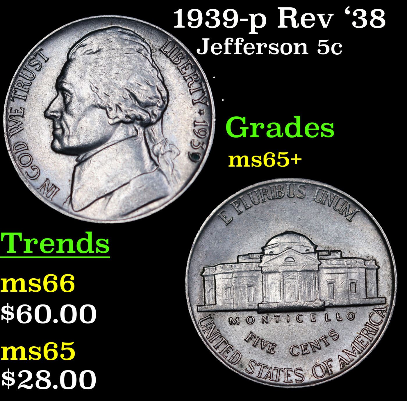 1939-p Rev '38 Jefferson Nickel 5c Grades GEM+ Unc.