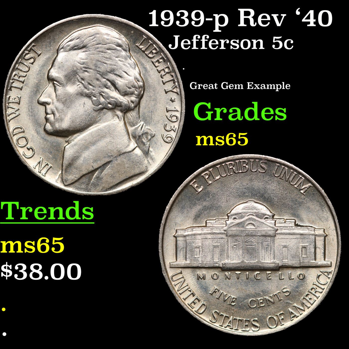 1939-p Rev '40 Jefferson Nickel 5c Grades GEM Unc.