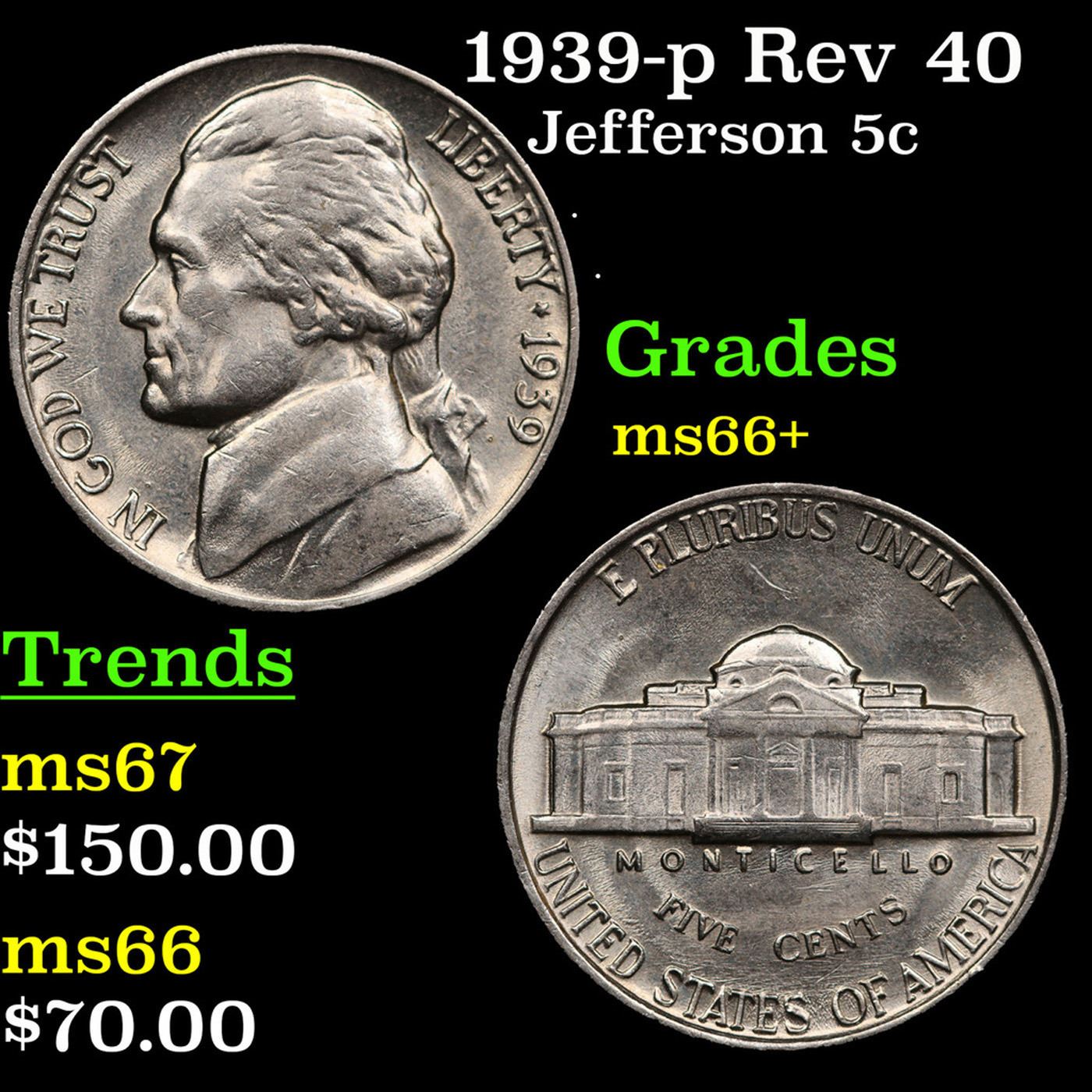 1939-p Rev 40 Jefferson Nickel 5c Grades GEM++ Unc.