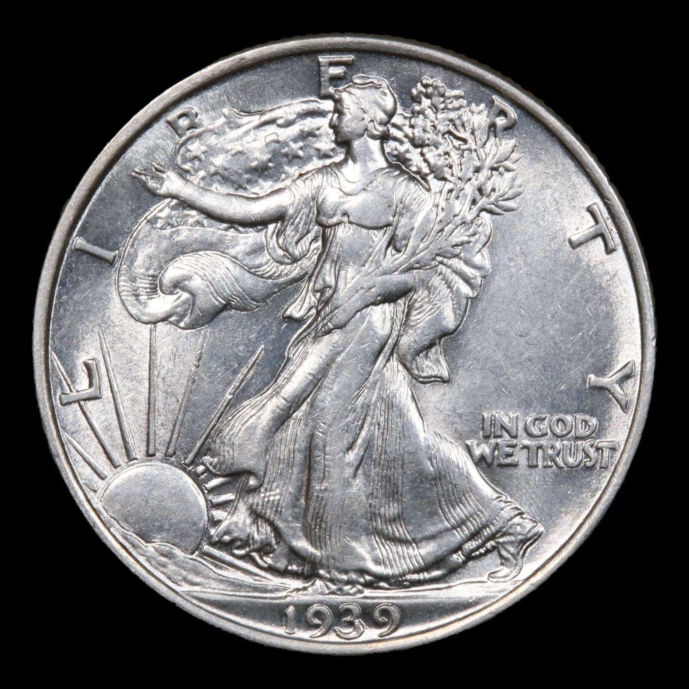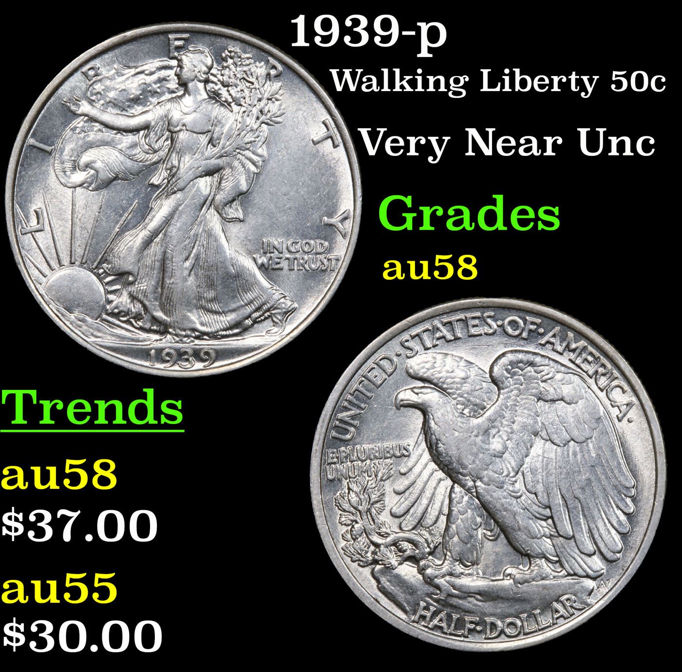 1939-p Walking Liberty Half Dollar 50c Grades Choice AU/BU Slider.