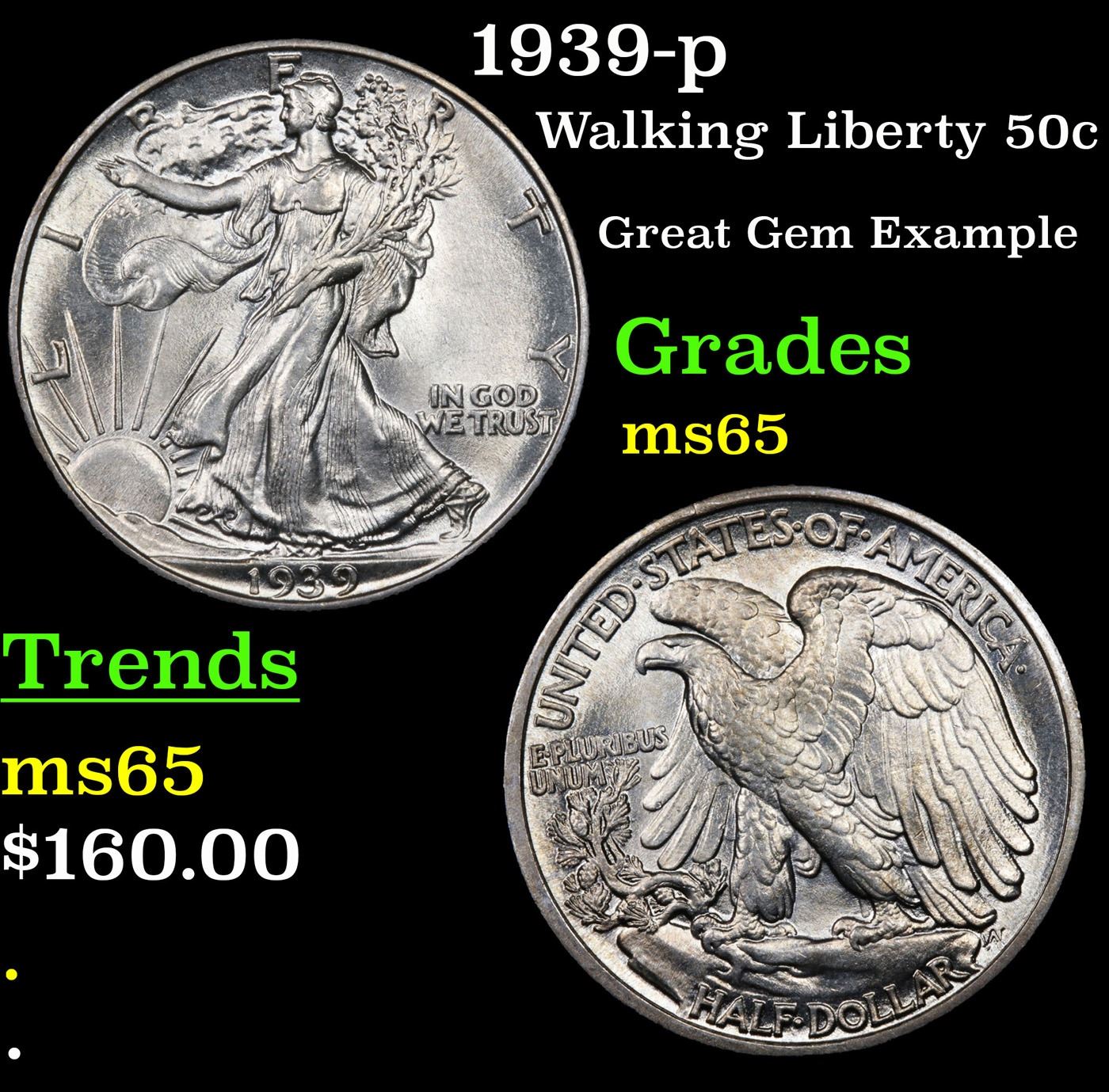 1939-p Walking Liberty Half Dollar 50c Grades GEM Unc.