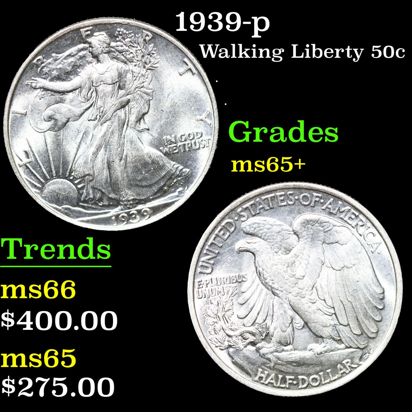 1939-p Walking Liberty Half Dollar 50c Grades GEM+ Unc.