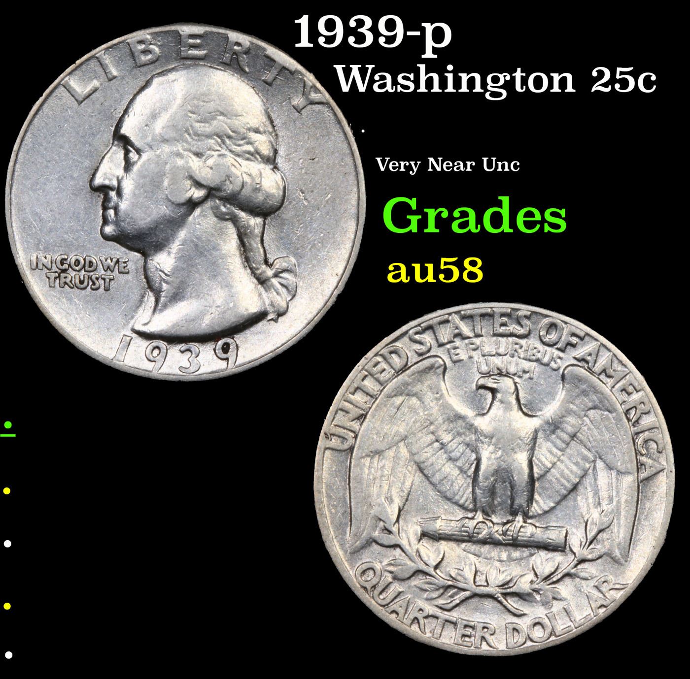 1939-p Washington Quarter 25c Grades Choice AU/BU Slider.