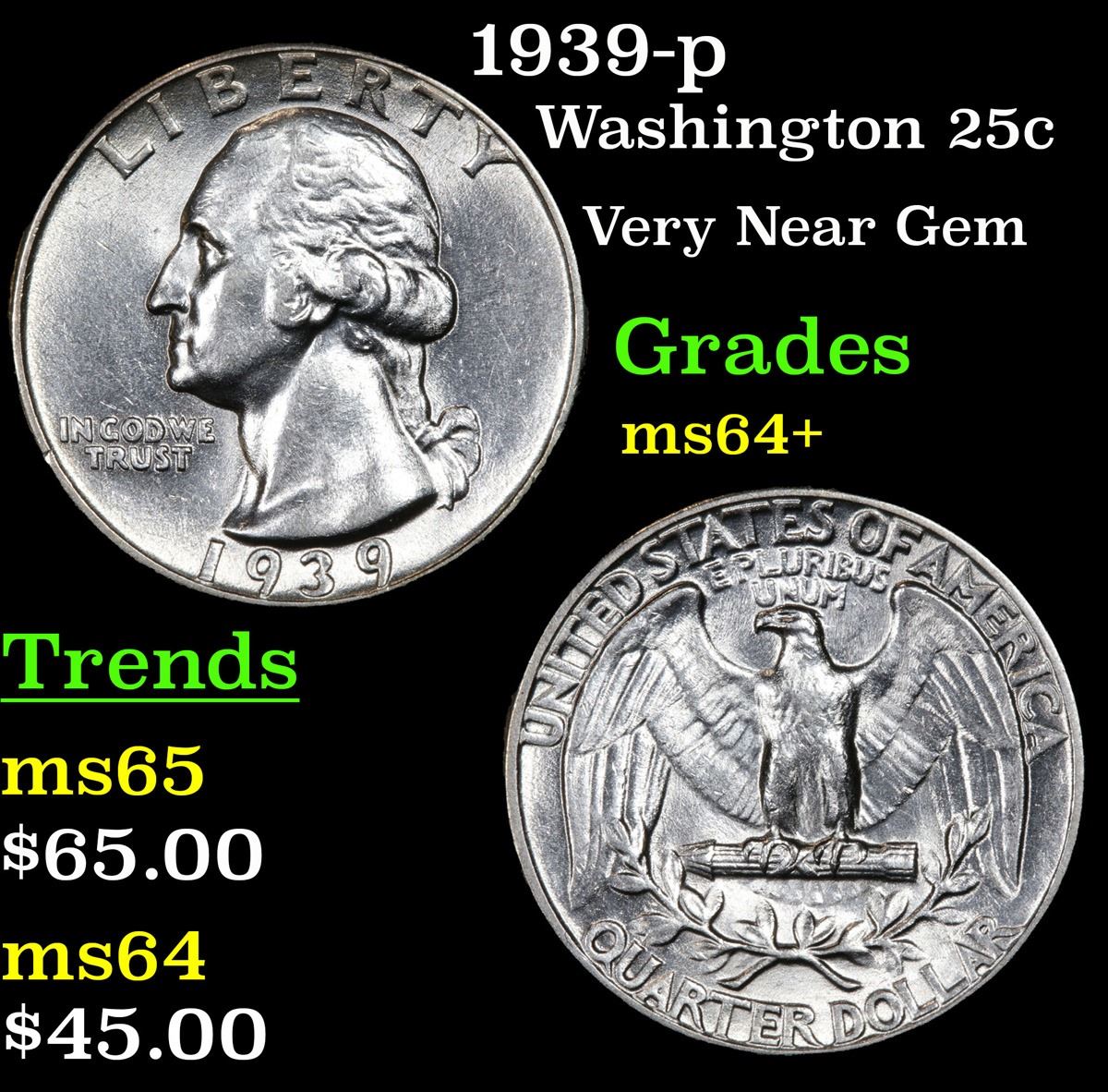 1939-p . Very Near Gem Washington Quarter 25c Grades Choice+ Unc.