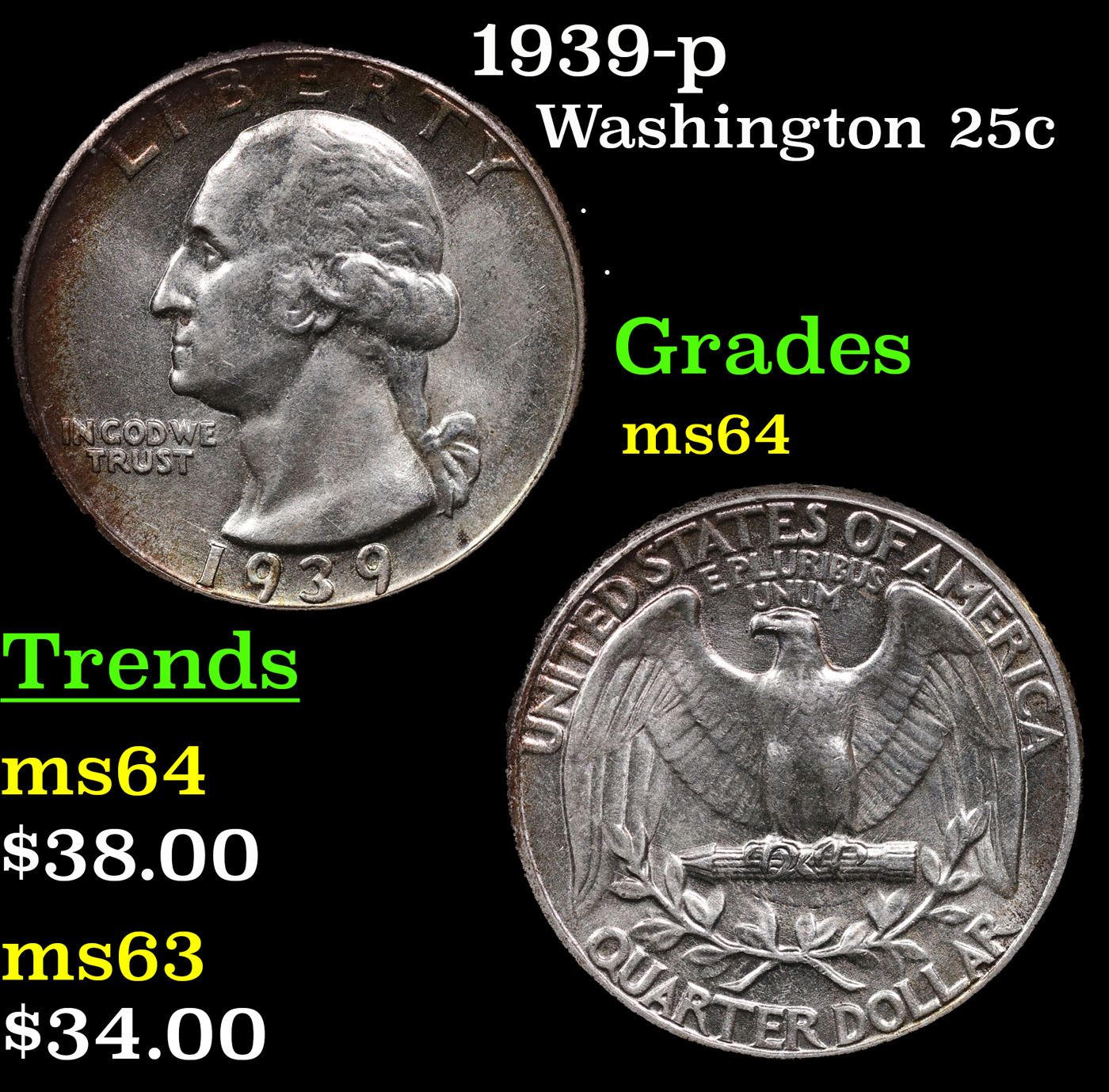 1939-p Washington Quarter 25c Grades Choice Unc.