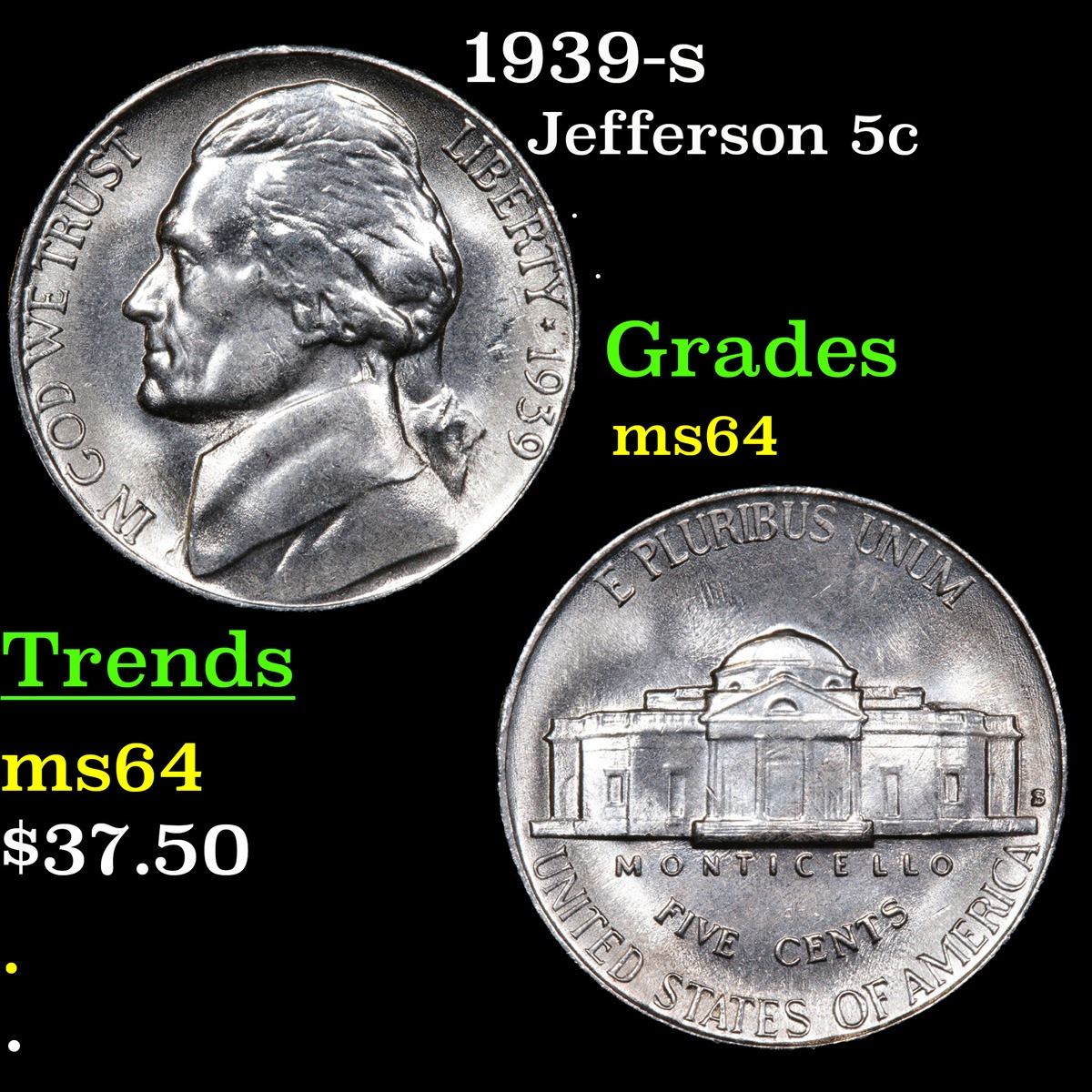 1939-s . . Jefferson Nickel 5c Grades Choice Unc.