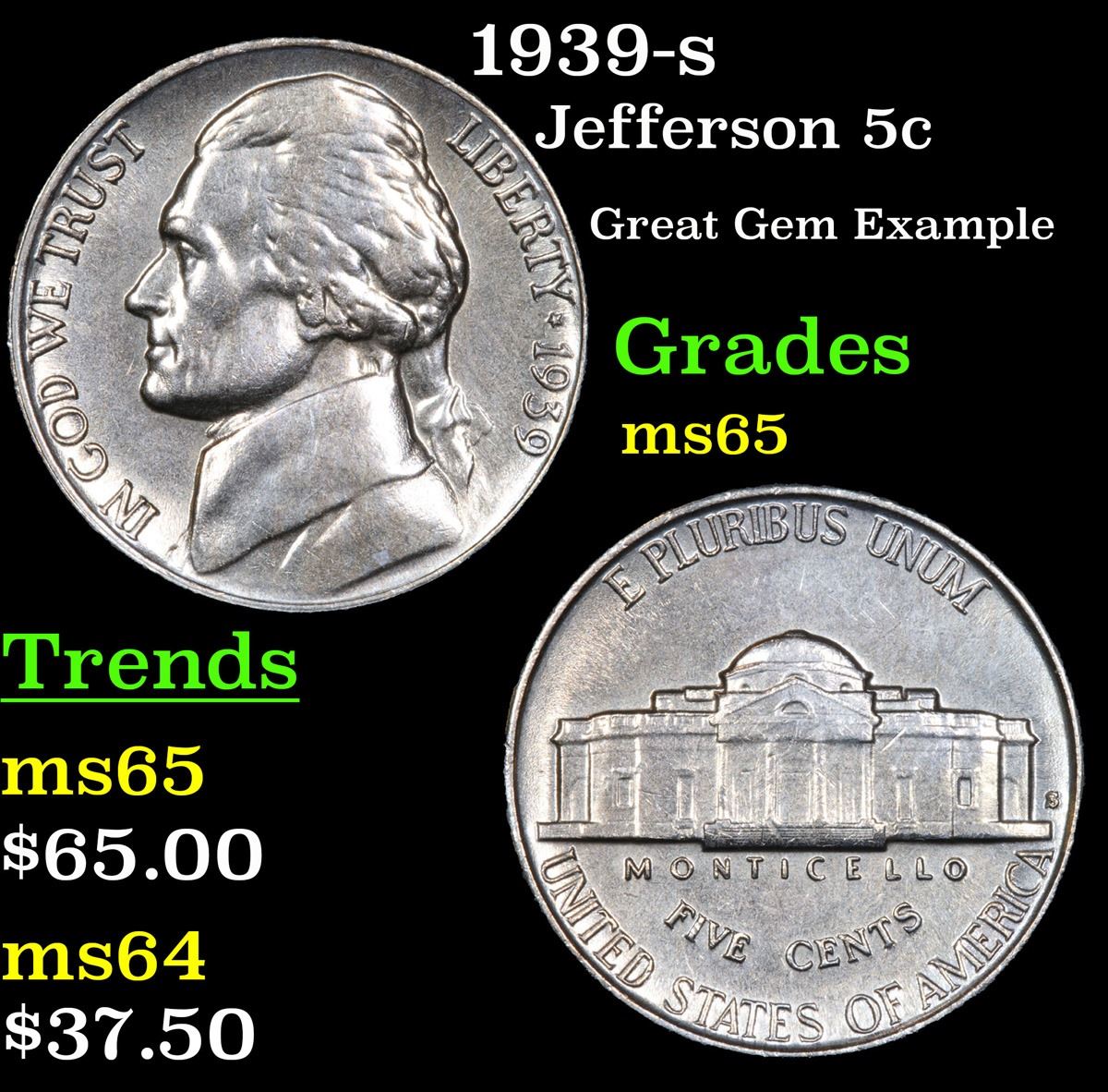 1939-s . Great Gem Example Jefferson Nickel 5c Grades GEM Unc.