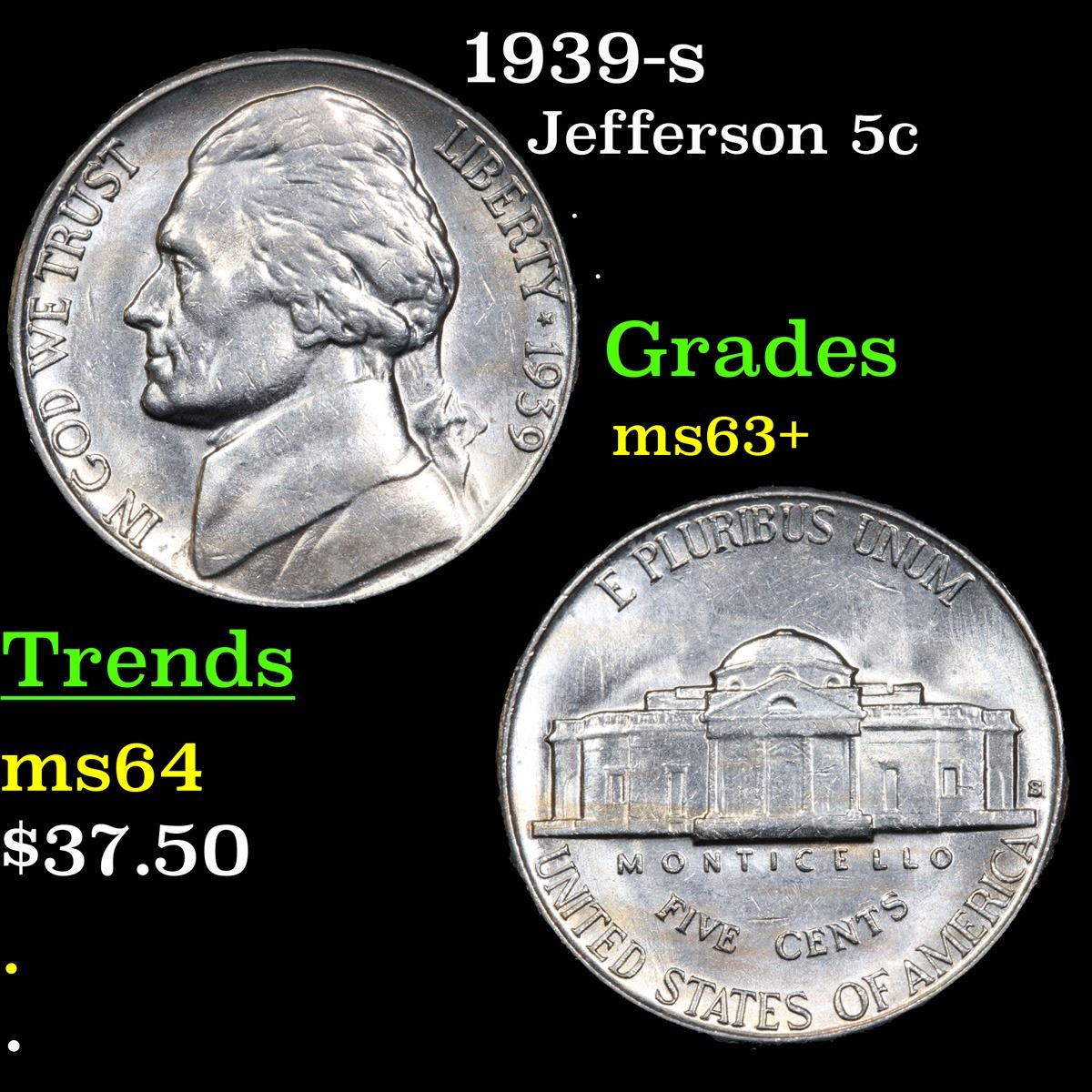 1939-s . . Jefferson Nickel 5c Grades Select+ Unc.