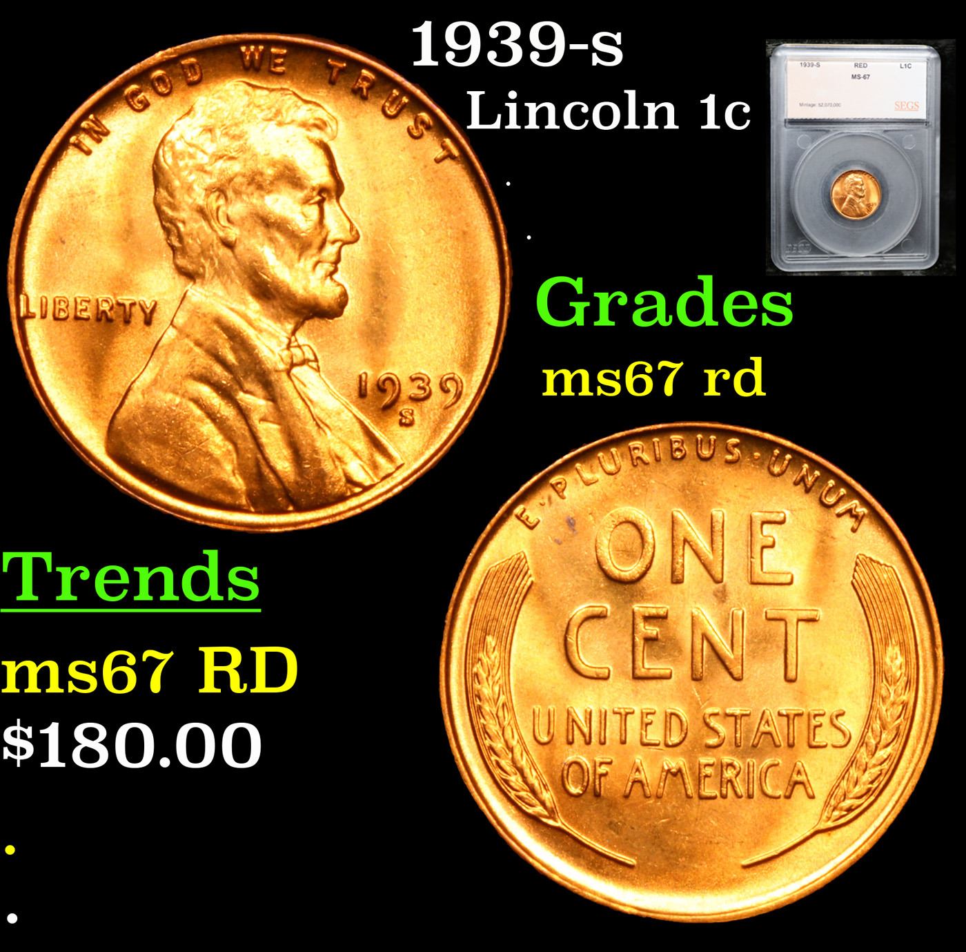 1939-s Lincoln Cent 1c Graded ms67 rd By SEGS.