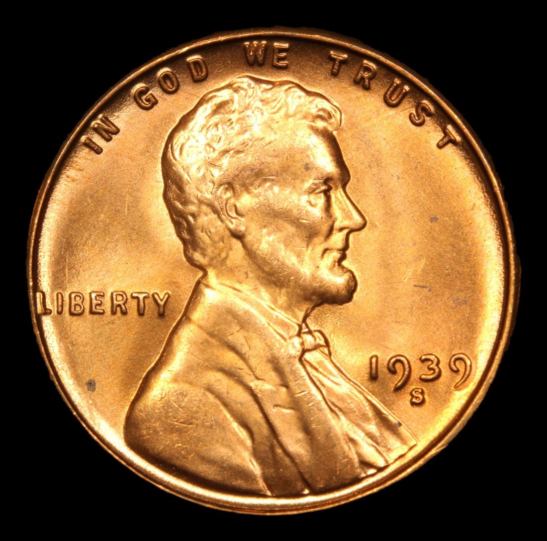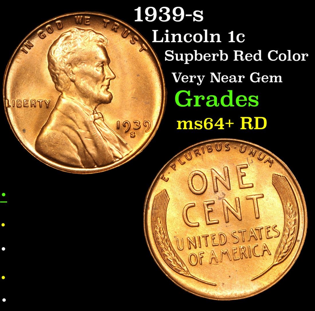 1939-s Lincoln Cent 1c Grades Choice+ Unc RD. Supberb Red Color Very Near Gem
