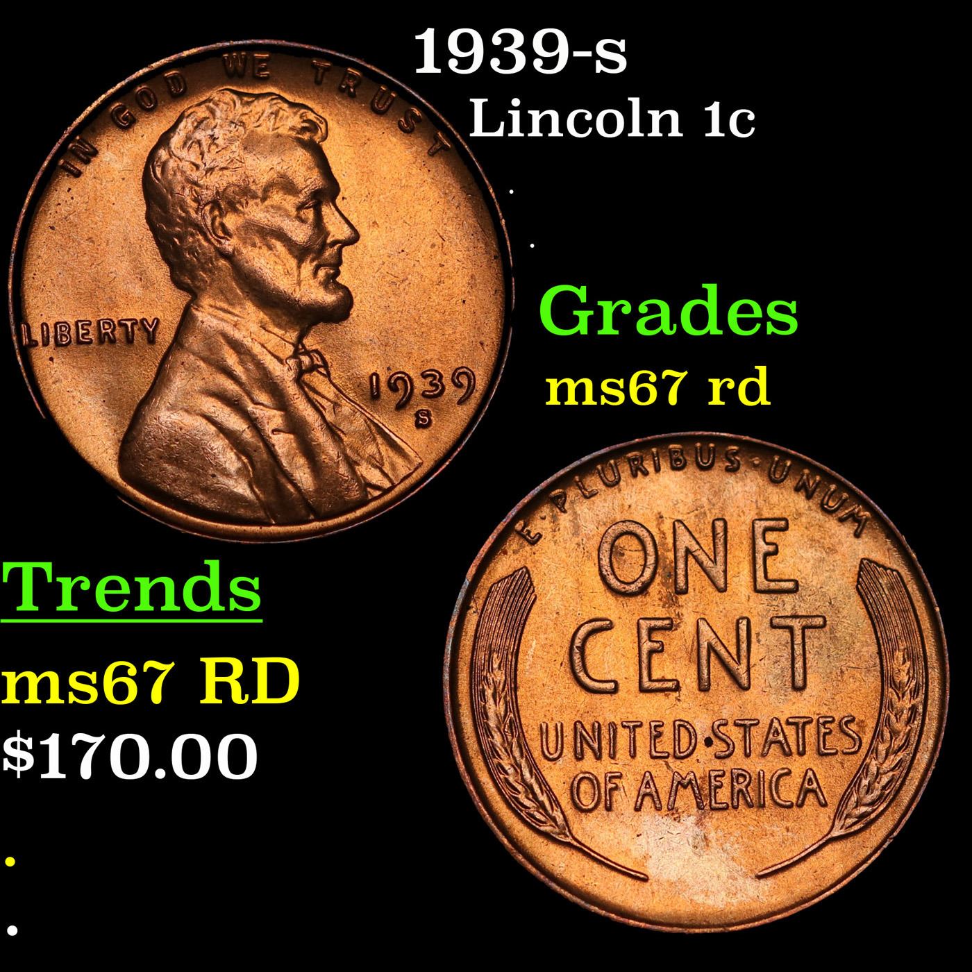 1939-s Lincoln Cent 1c Grades GEM++ Unc RD.