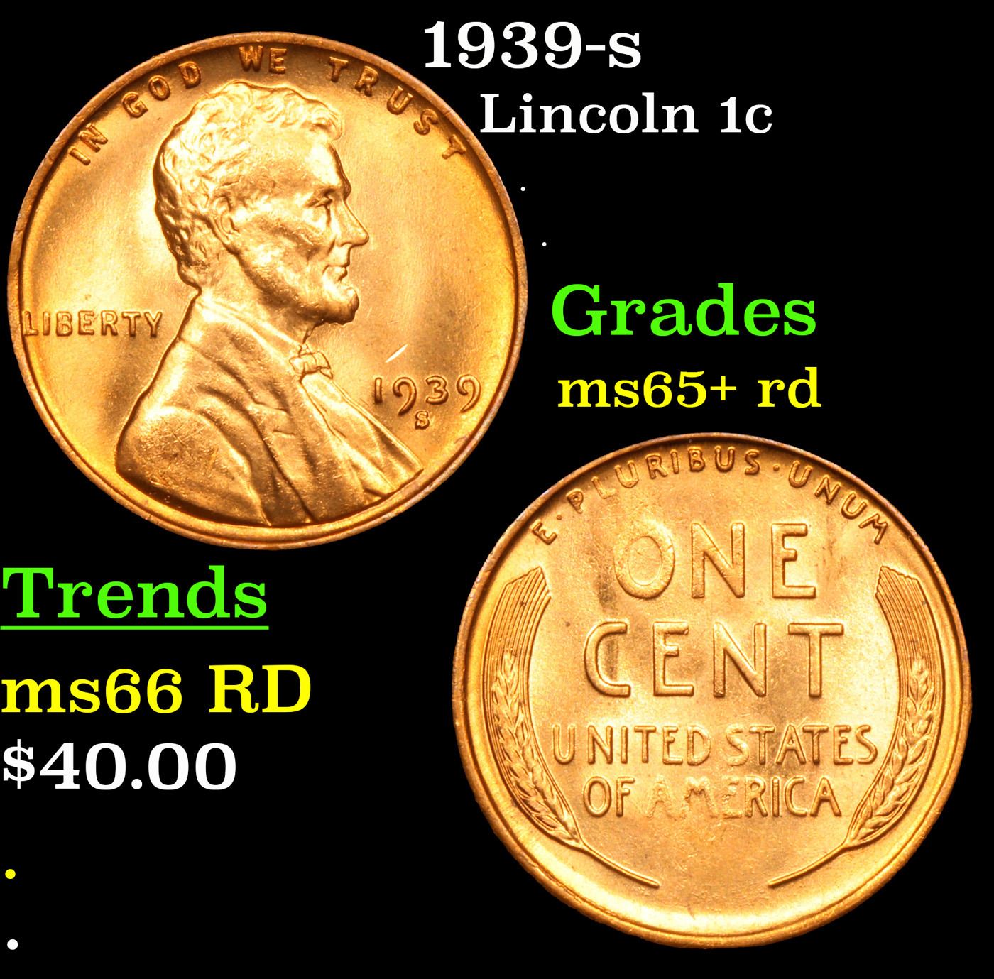 1939-s Lincoln Cent 1c Grades Gem+ Unc RD.