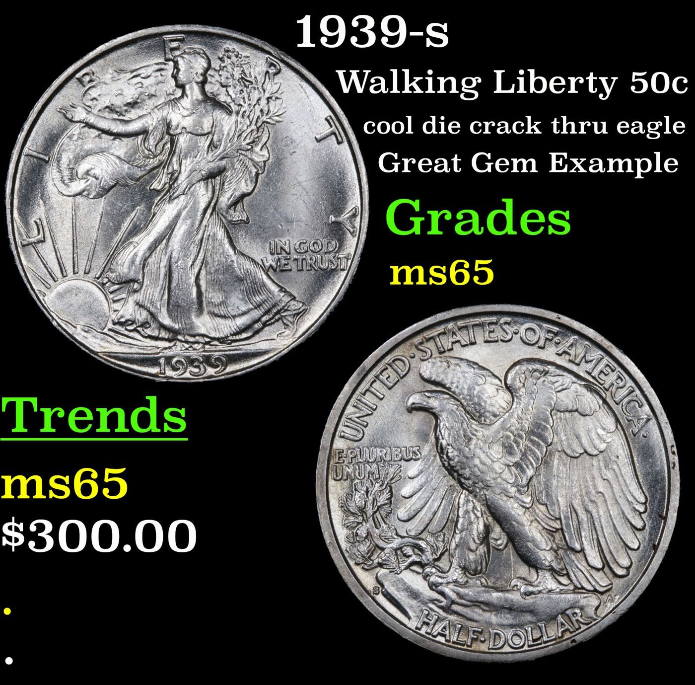 1939-s Walking Liberty Half Dollar 50c Grades GEM Unc.