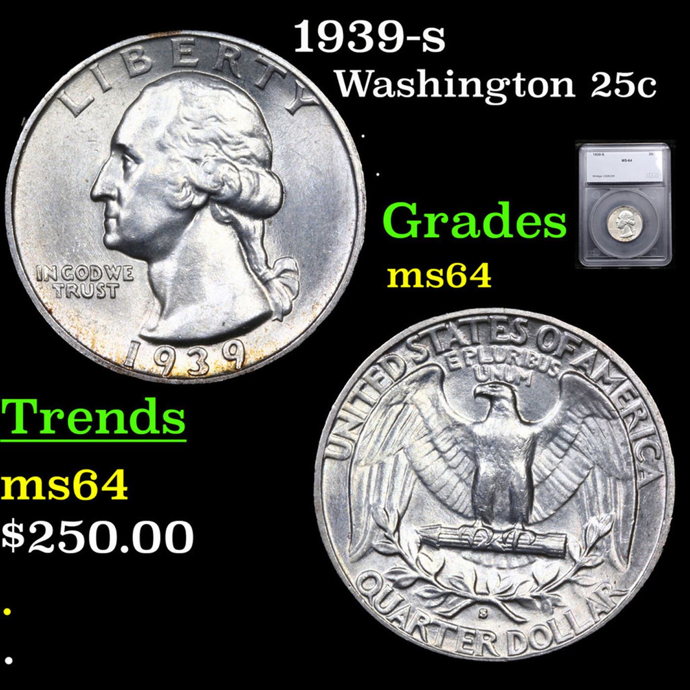 1939-s Washington Quarter 25c Graded ms64 By SEGS.