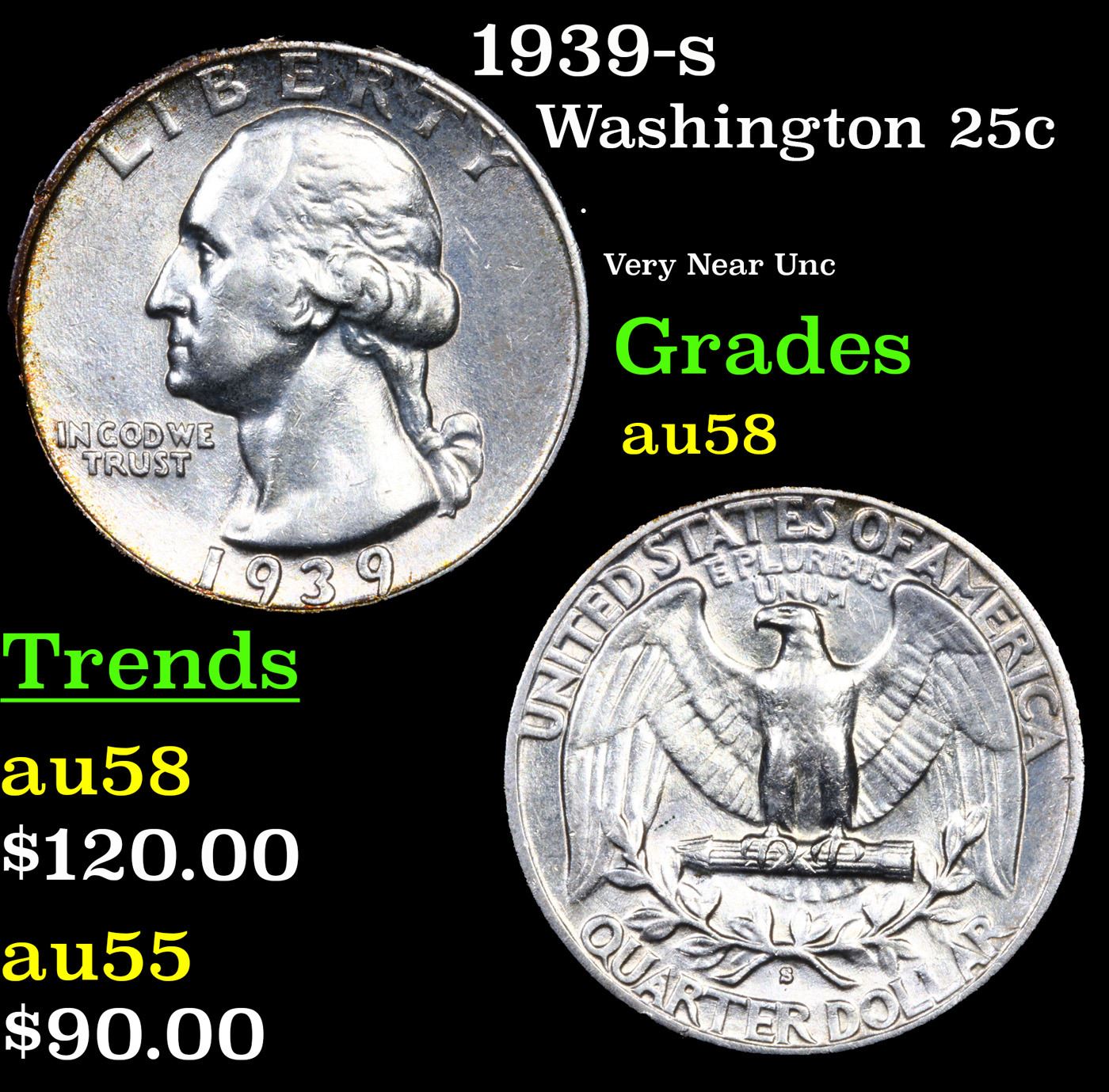 1939-s Washington Quarter 25c Grades Choice AU/BU Slider.