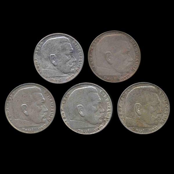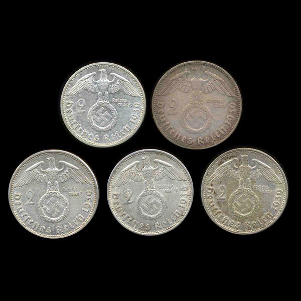 1939A/B/F/G/J Nazi Germany 2 Mark Silver Hi Grade 5 Pcs (COI-8091)