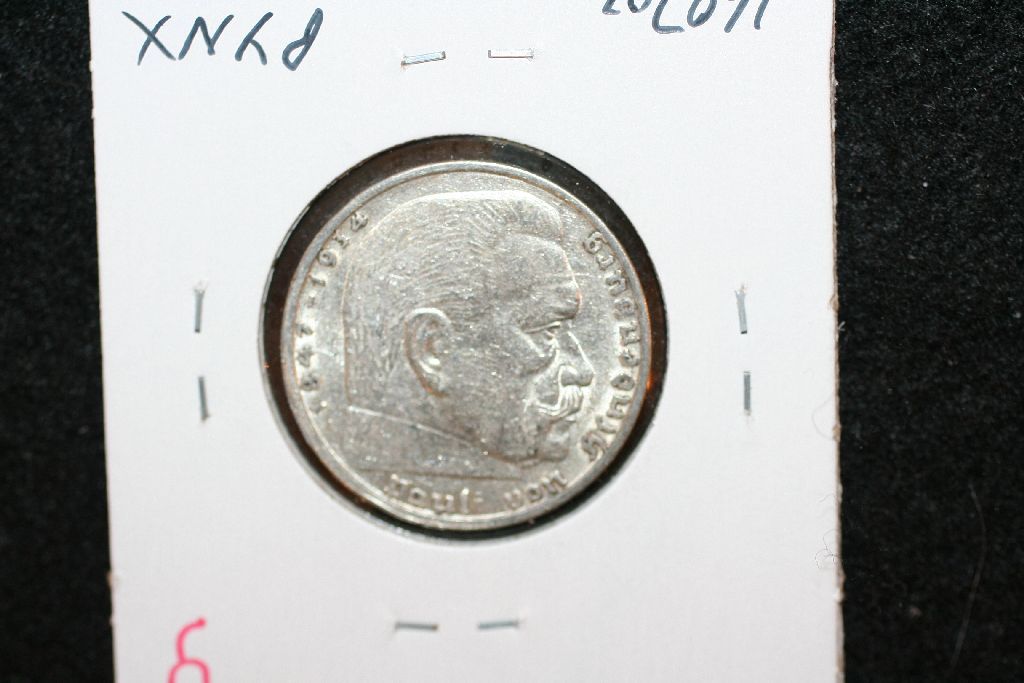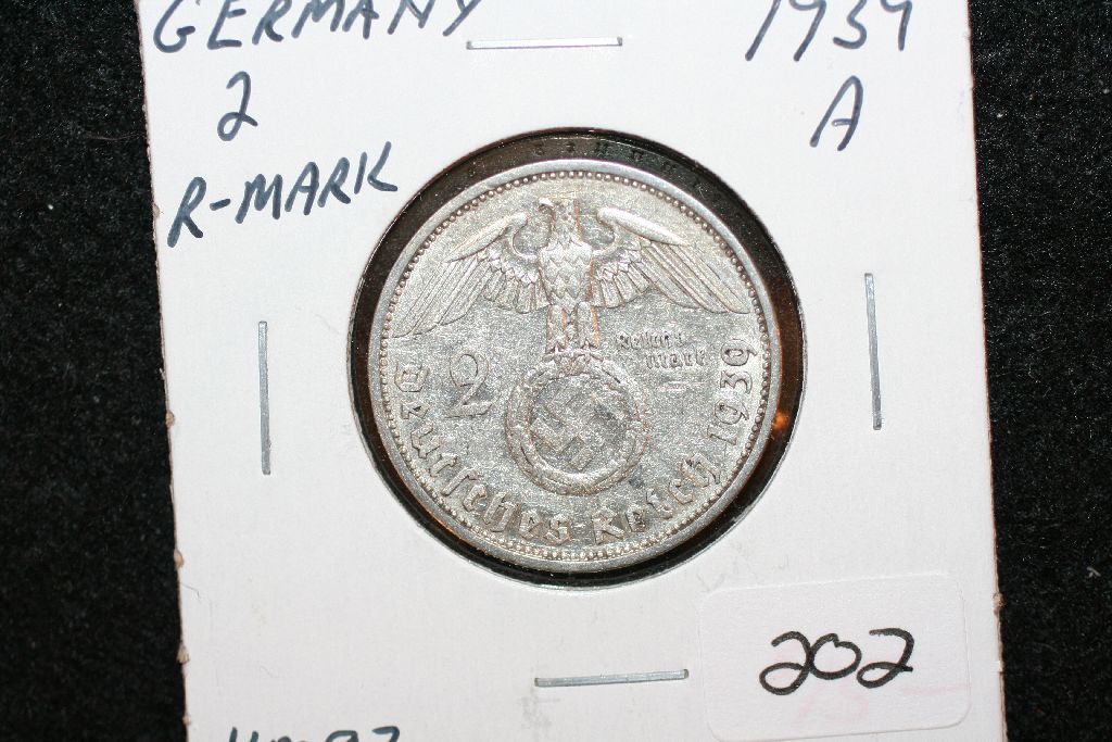 1939A German 2 Reichsmark Foreign Coin W/Flying Eagle Holding Swatstika