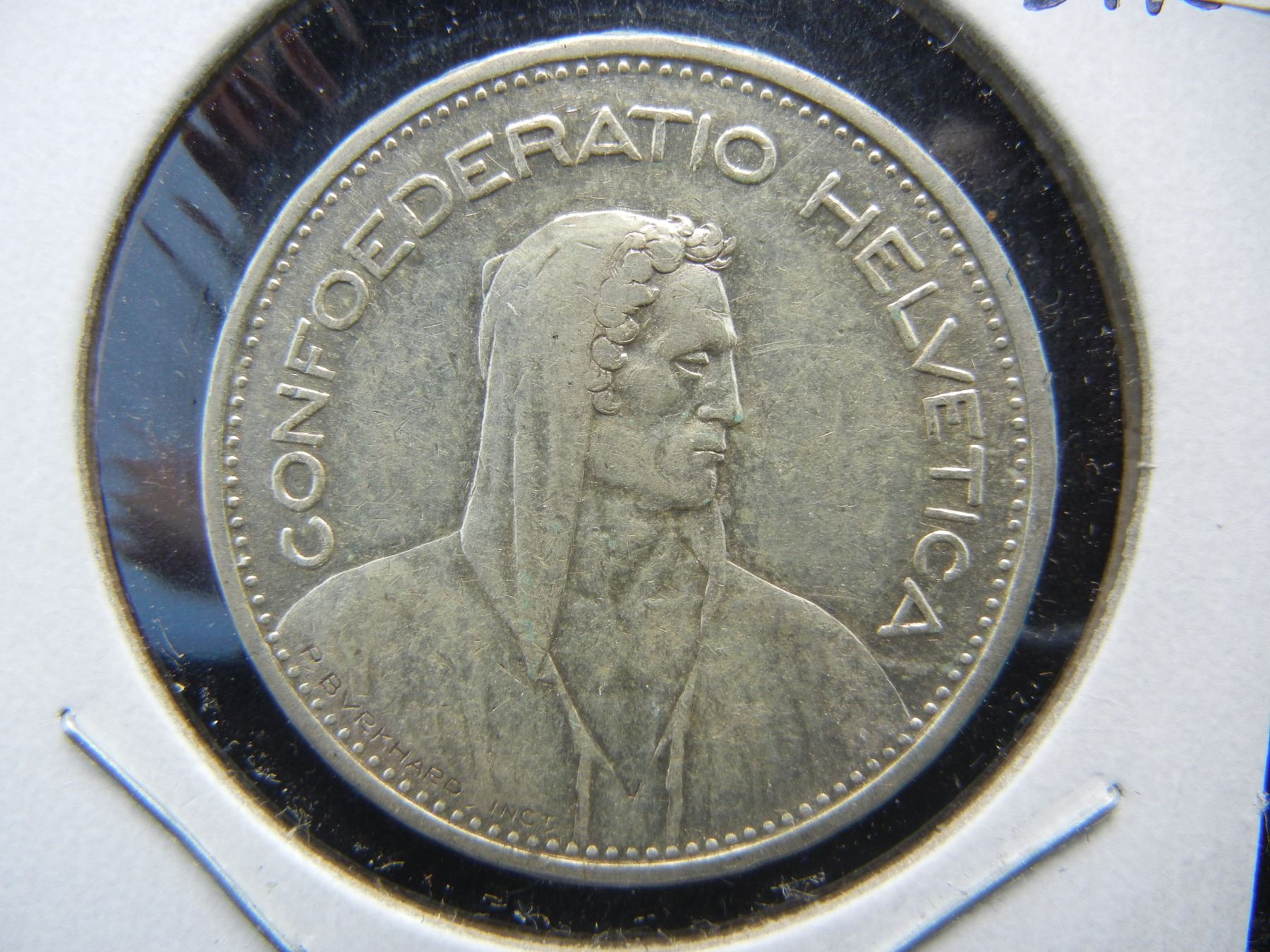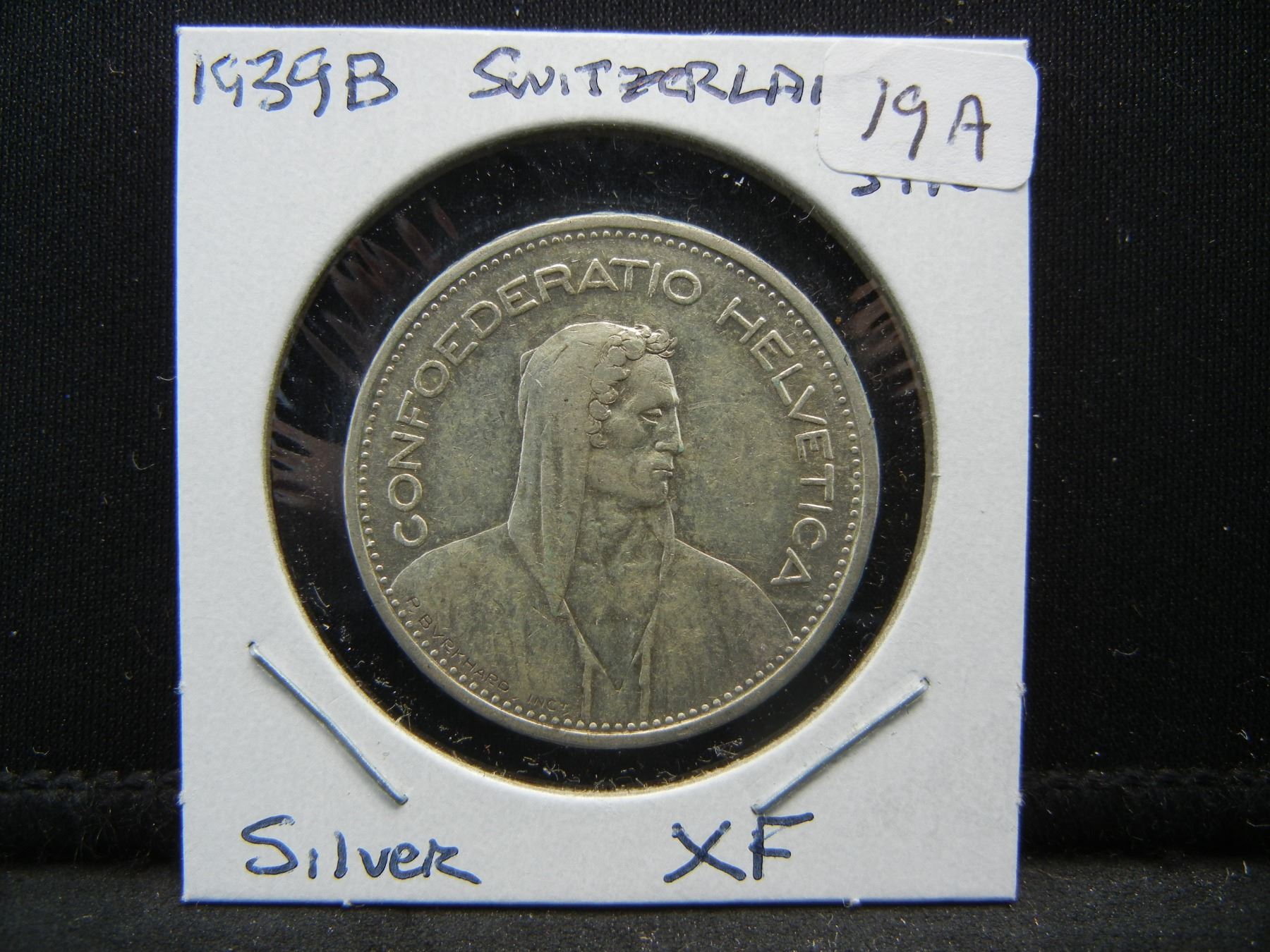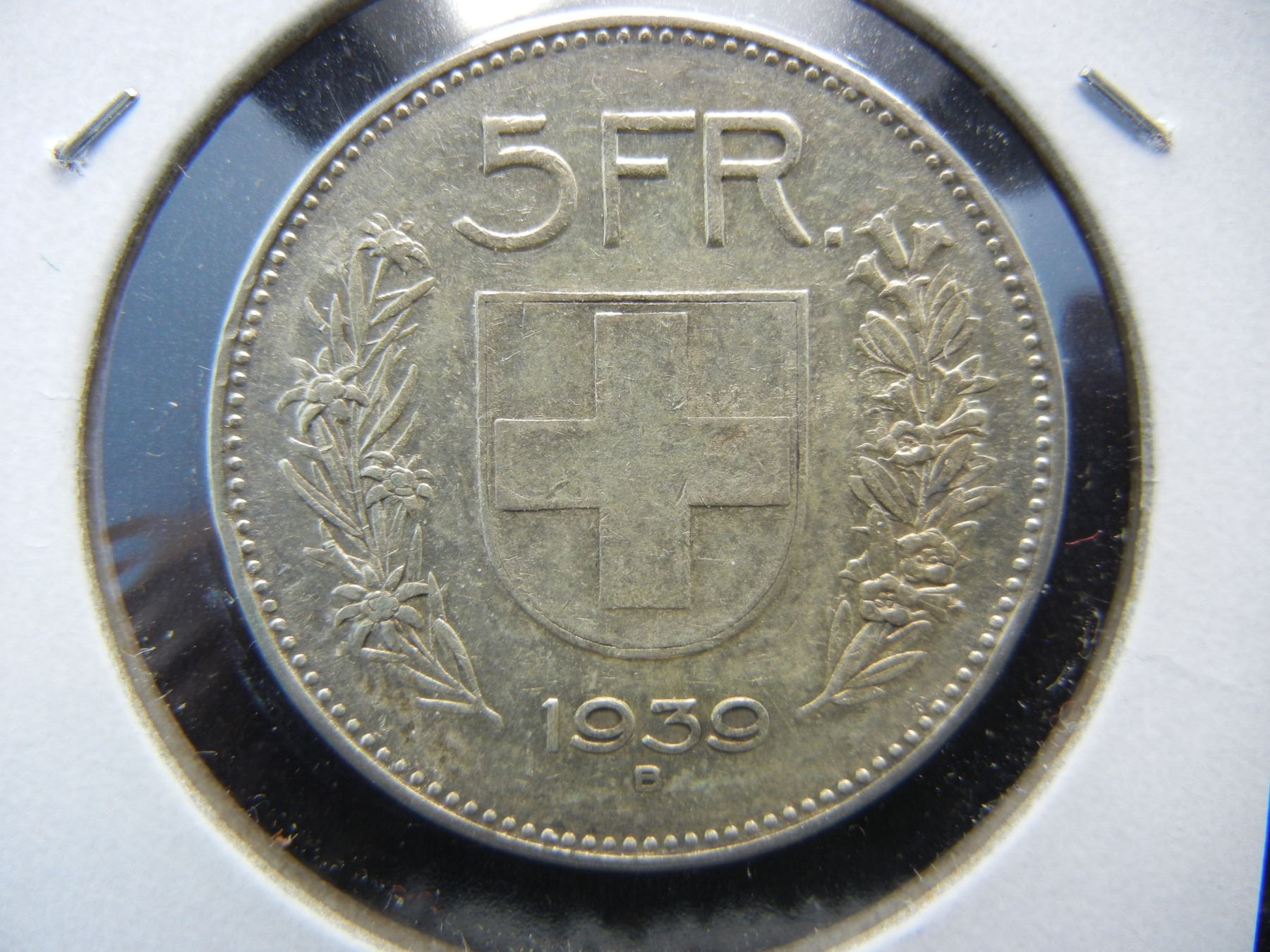 1939B Switzerland 5 Franc 90% silver coin. Extremely Fine.