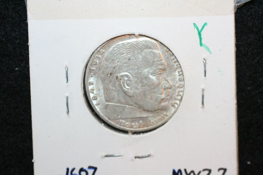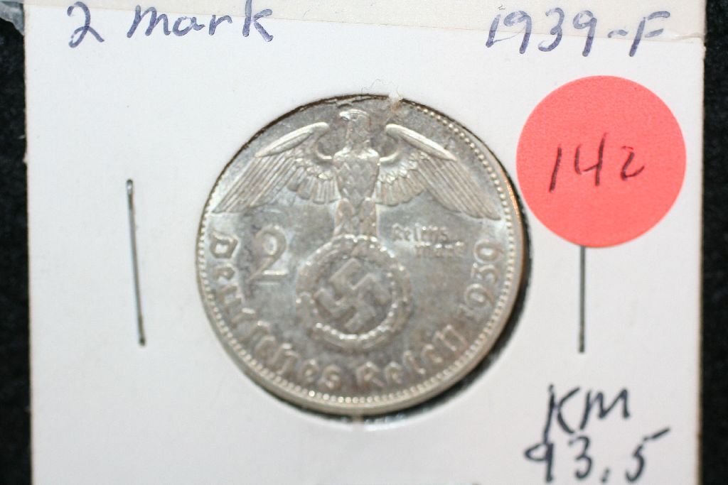 1939F German 2 Reichsmark Foreign Coin, Flying Eagle W/Swatstika
