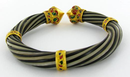 Excellent well-crafted piece with heavy gold adornments; elephant tail hair fibres are like heavy (1/16") fishing line