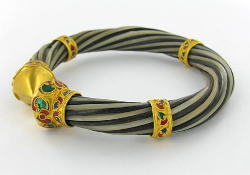 Excellent well-crafted piece with heavy gold adornments; elephant tail hair fibres are like heavy (1/16") fishing line